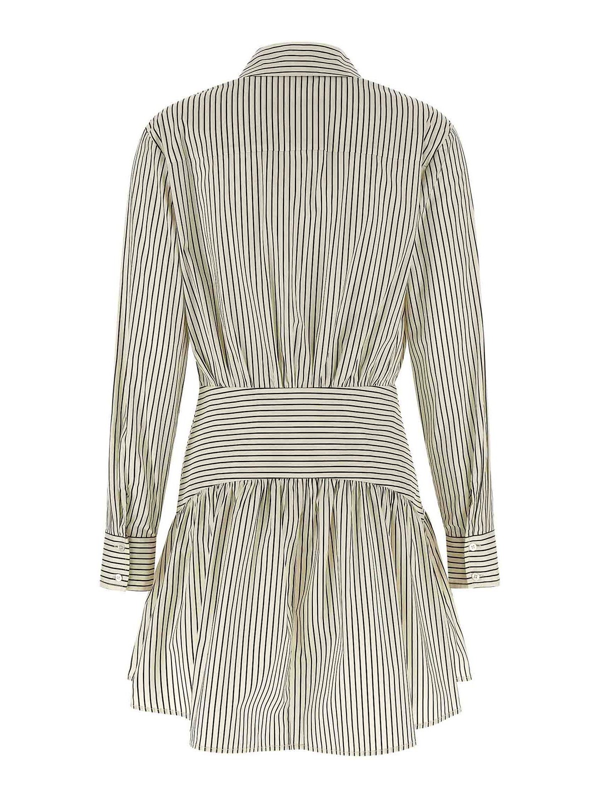 ケミシェスタイルのストライプコットンポプリンを使用したロッコのミニドレス。シャツカラー、フロントボタン留め、カールウエスト、ロングカフスリーブ。