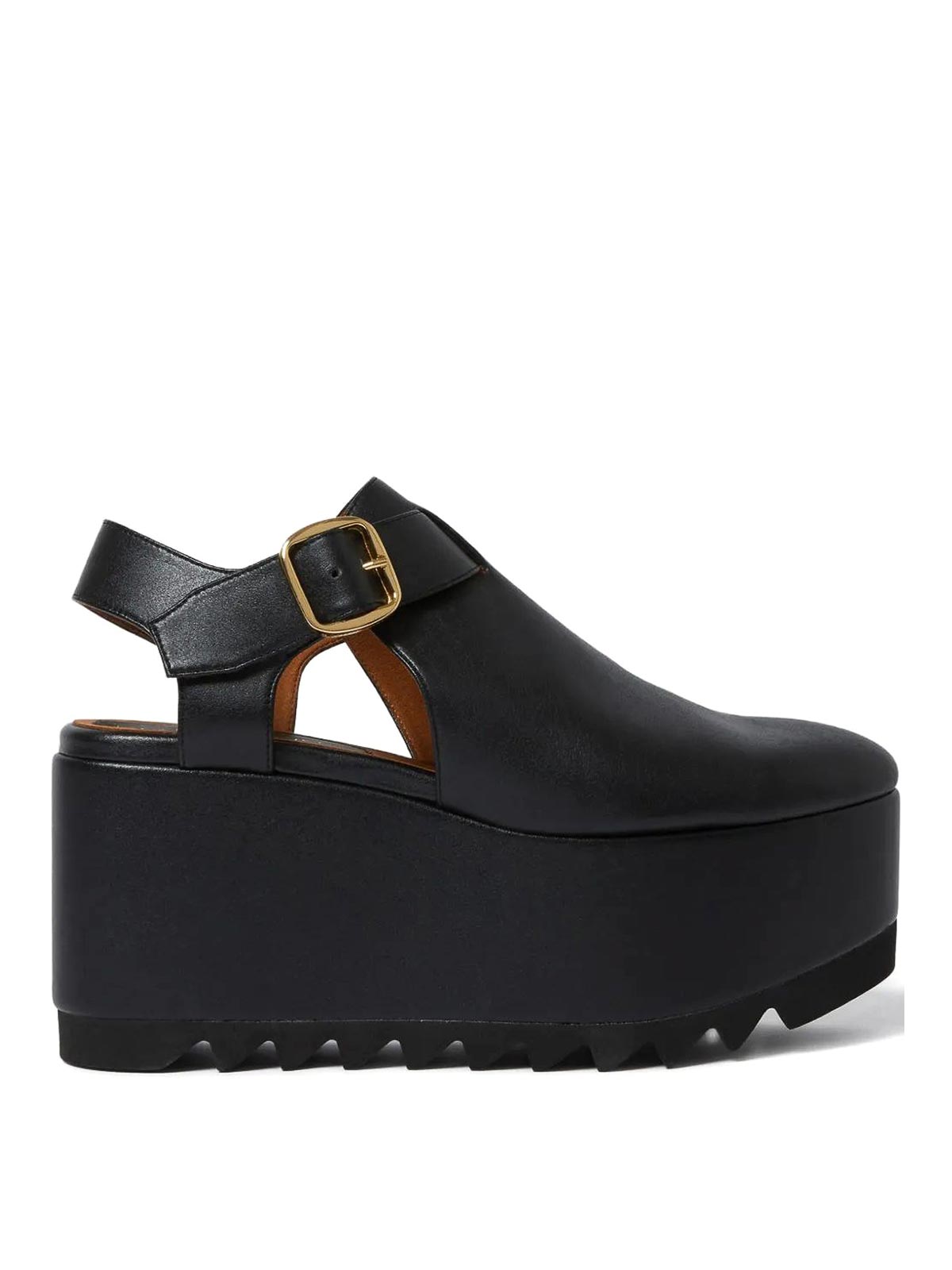 ブラック、バックル留め、ラウンドトウ、プラットフォームソール