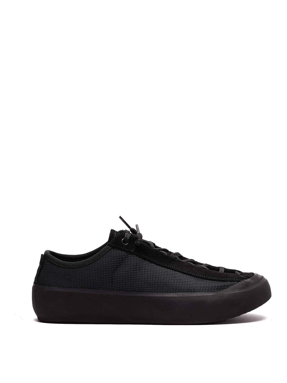 ストーンアイランドブラックスニーカー、ラウンドトウ、レースクロージャー、ラバーマキシソール、ラバーアッパー