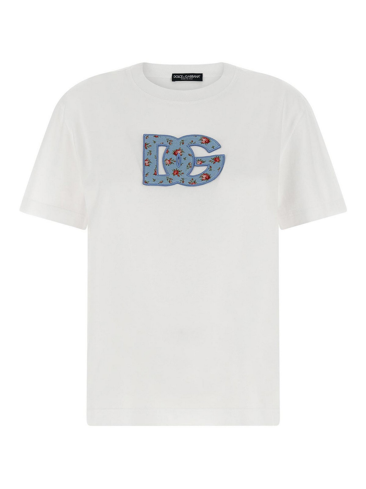 フロントに「DG」パッチをあしらったコットンジャージーTシャツ、クルーネック、ショートスリーブ。