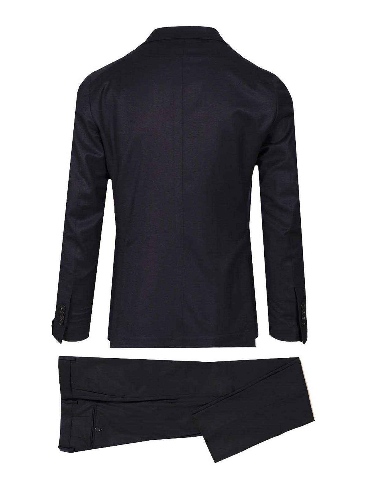 ウールとシルクのスーツシングルブレスト裏地なしホーンボタンダブルバックベントパッチポケットプリーツ付きパンツ