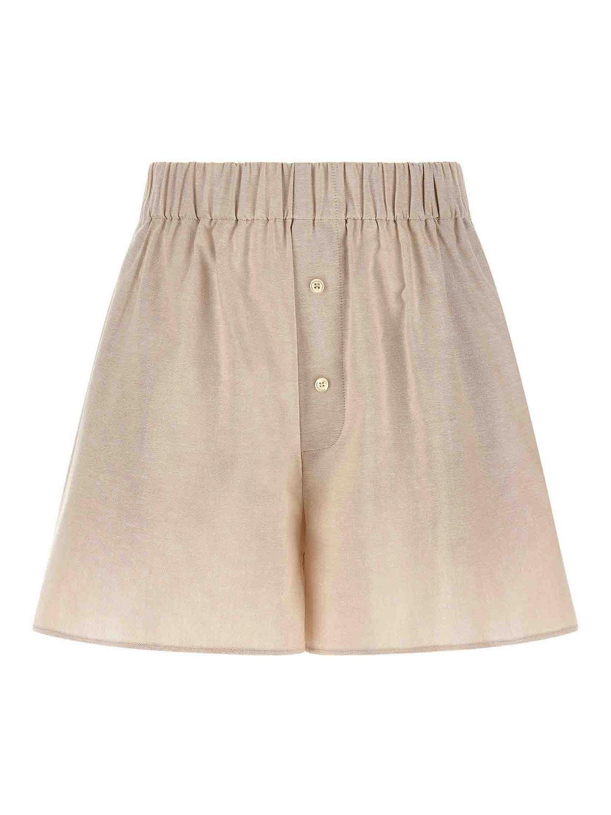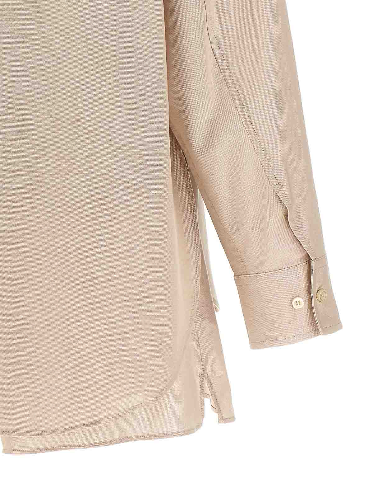 ソリッドオックスフォードコットンのジョージアナセットスーツは、ポインテッドカラーシャツ、フロントボタンクロージャー、胸ポケット、袖口とドロップショルダー付きロングスリーブ、サイドスリットとボクサーショーツ、伸縮性ウエストバンド、ボタン付きトロンプルイユフラップ、ポケット、サイドスリットで構成されています。