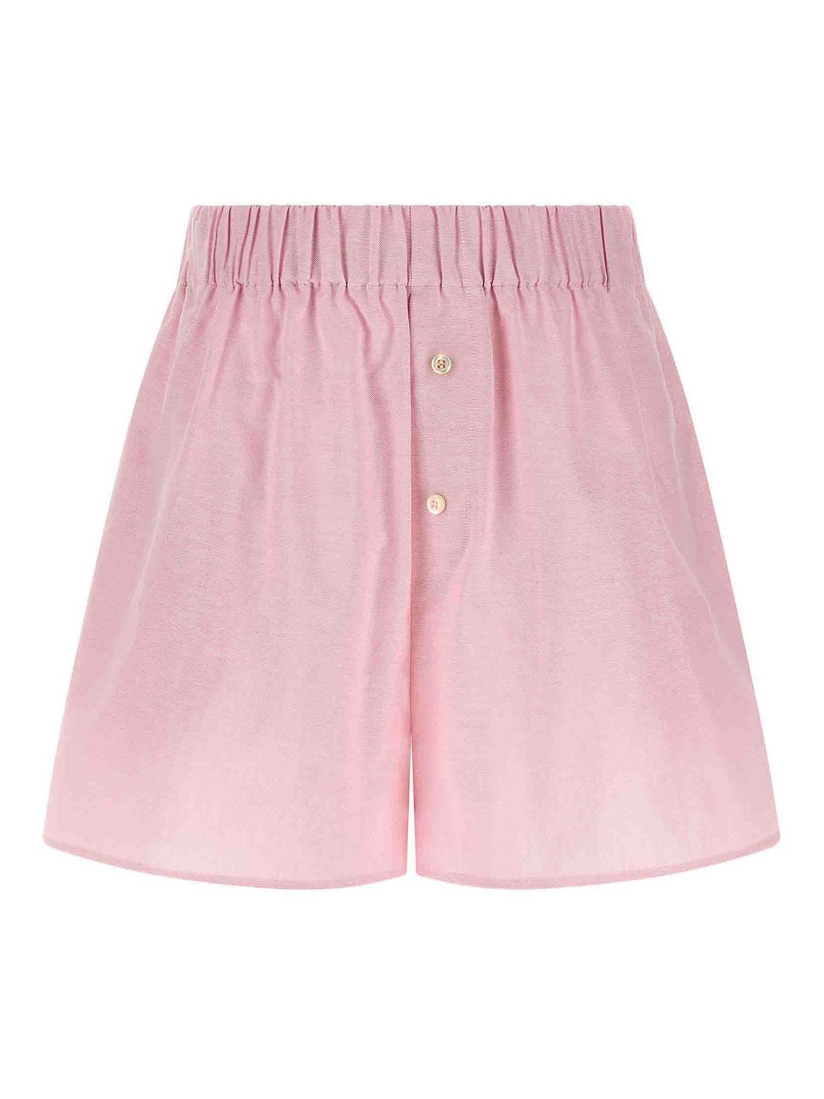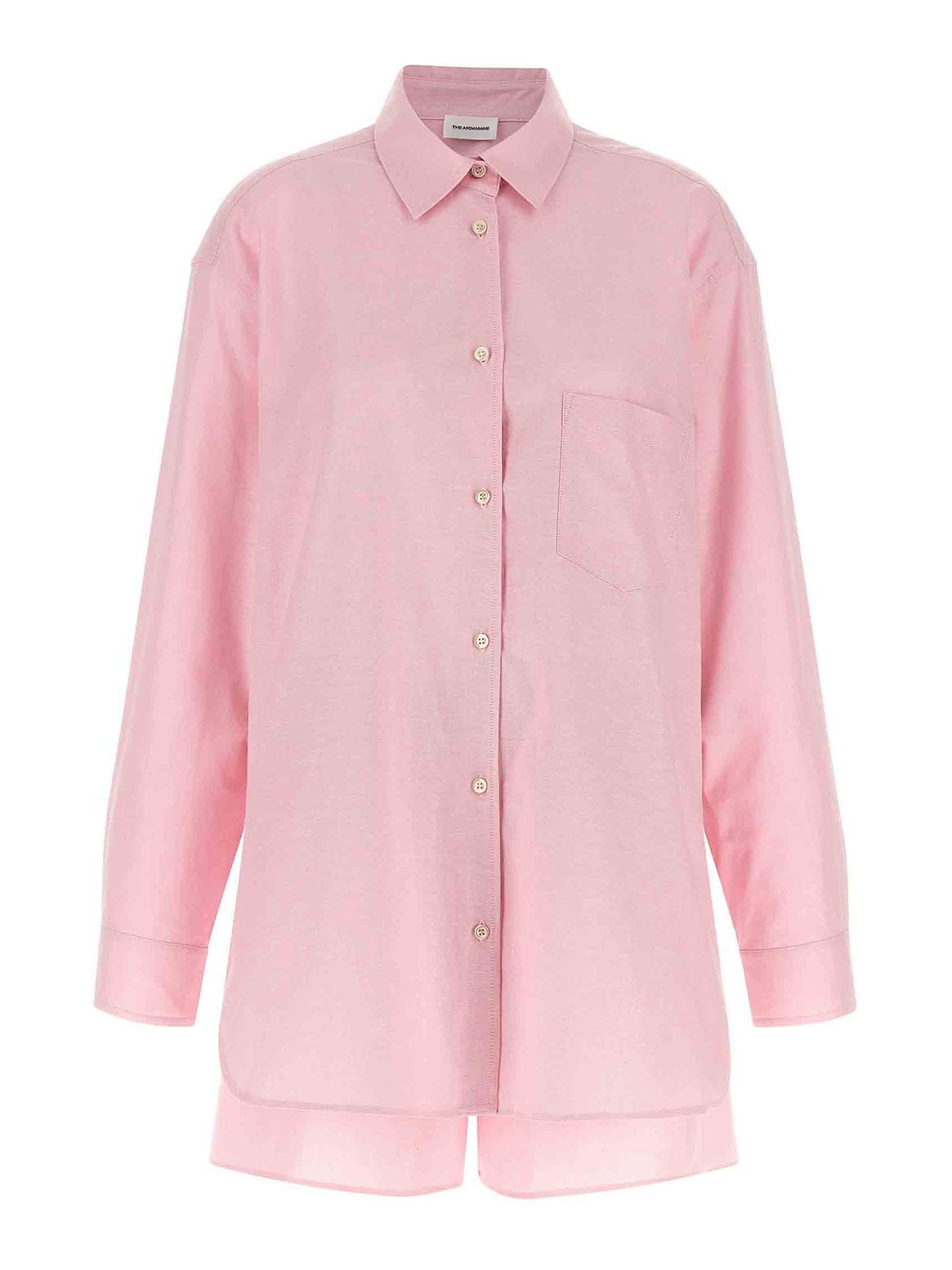 ソリッドオックスフォードコットンのジョージアナセットスーツは、ポインテッドカラーシャツ、フロントボタンクロージャー、胸ポケット、袖口とドロップショルダー付きロングスリーブ、サイドスリットとボクサーショーツ、伸縮性ウエストバンド、ボタン付きトロンプルイユフラップ、ポケット、サイドスリットで構成されています。
