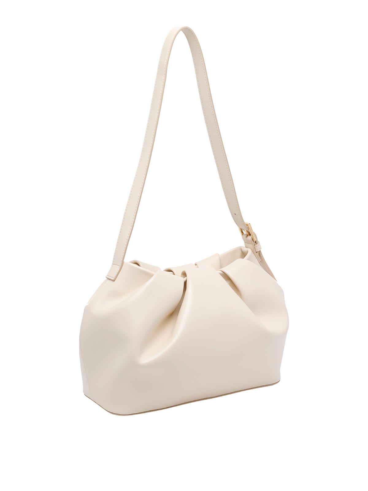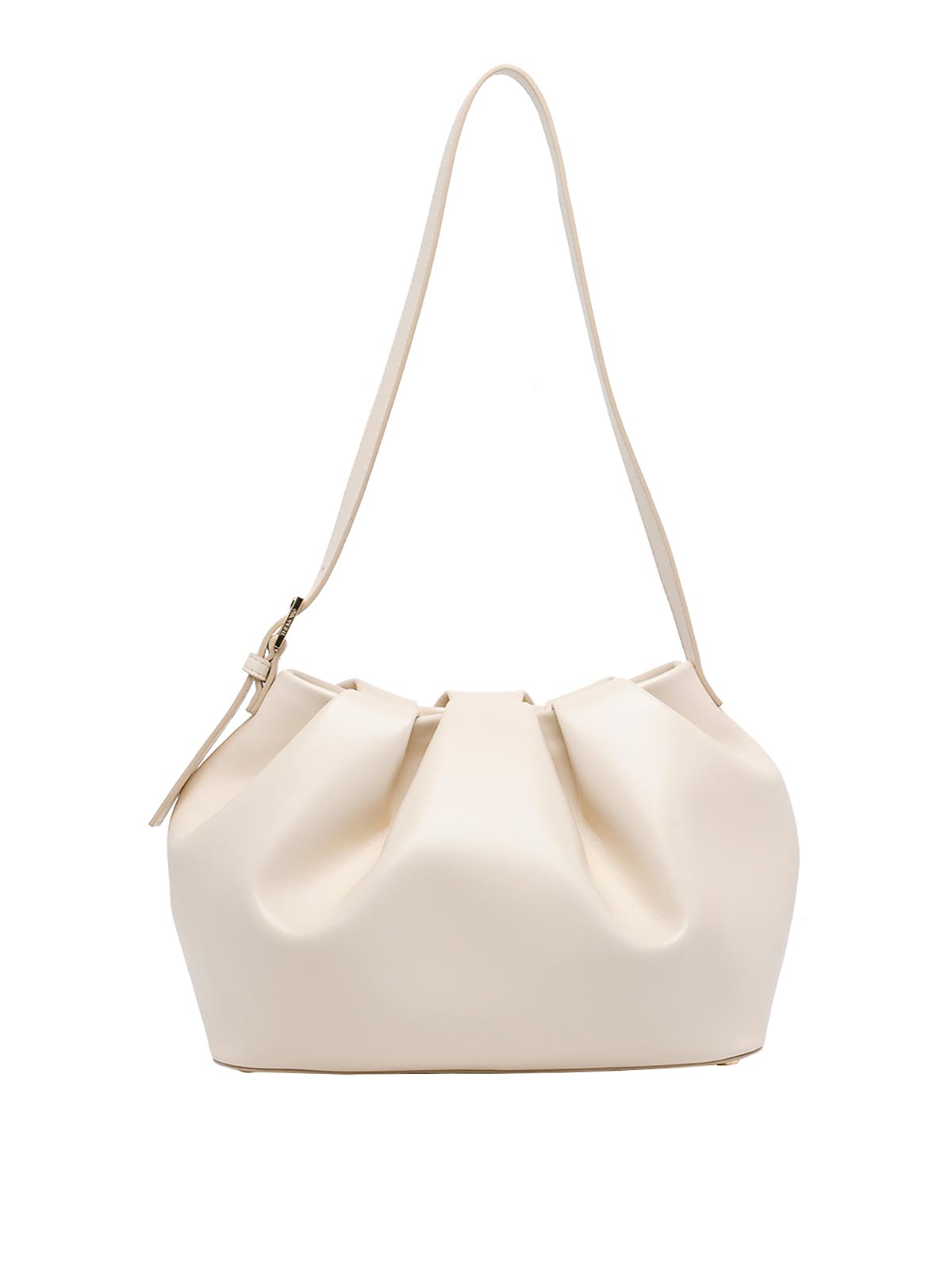 モワレのバタークリームアテナバケットクロスボディバッグ、マグネットクロージャー、内側にファスナーポケット、調節可能なショルダーストラップ