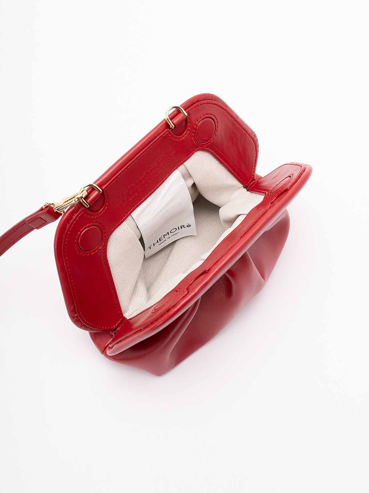 BIOSビーガン生地の小さなクラッチバッグ、コンパクトで軽量、必需品の使用に最適です。チリペッパーカラーがミニマルなデザインに個性を与えています。ファスナー、裏地付きの内装、Moirã©のロゴが実用的で洗練されたモデルに仕上がっています。
