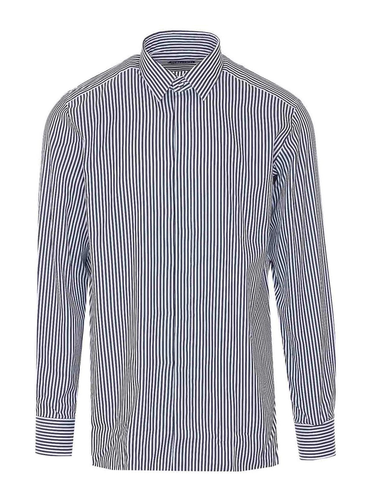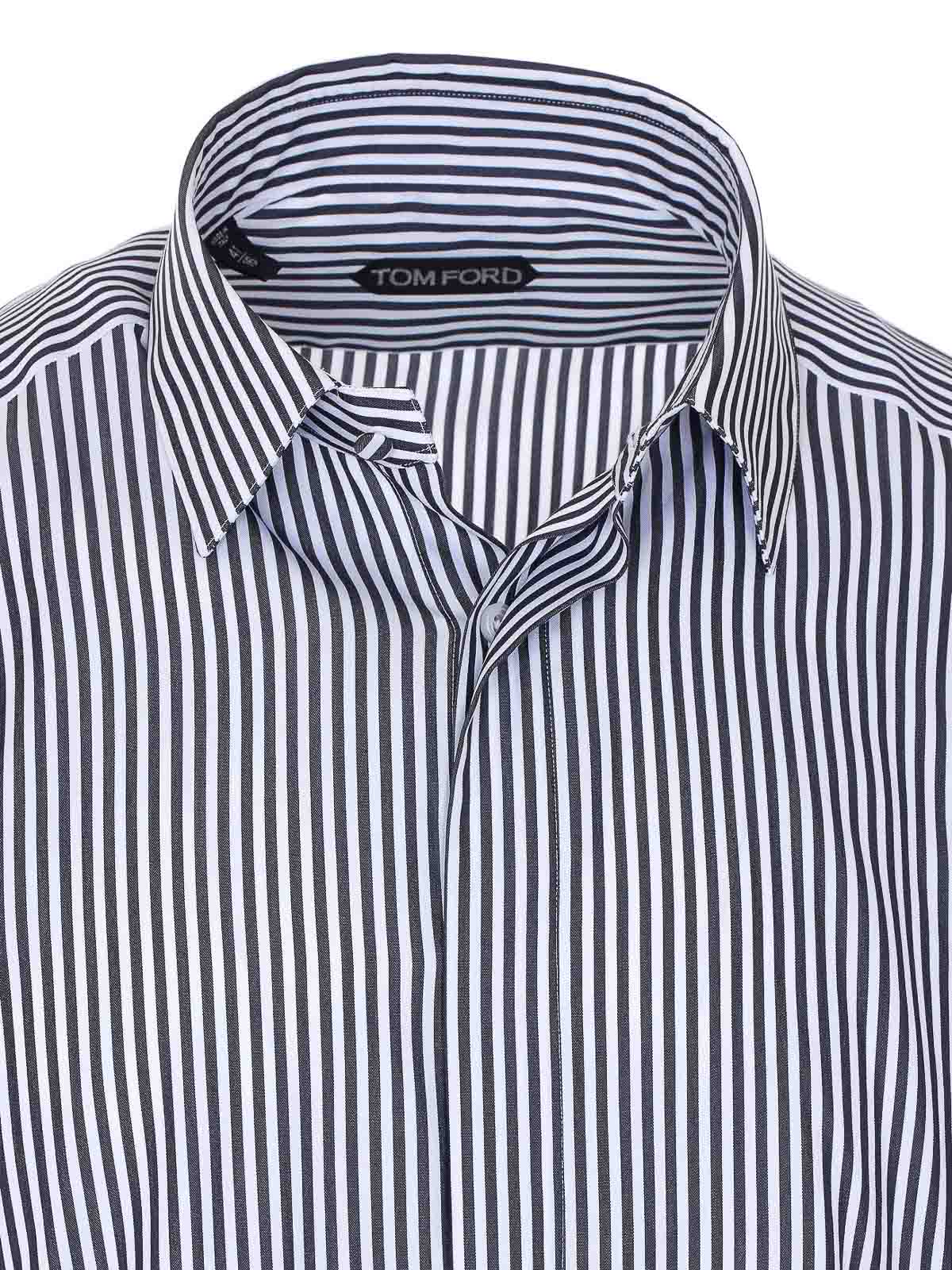トムフォードブラック&ホワイトストライプシャツ、フロントボタン留め、レギュラーカラー、ロングスリーブ、ボタンオンカフス