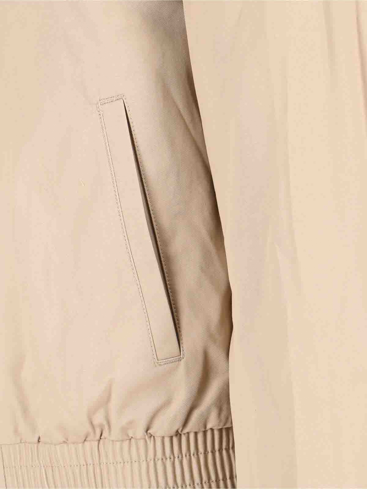 トニーワックコットンボンバージャケット、ベージュ、襟、ファスナー開閉、長袖、襟ボタン、サイドに斜めポケット2つ、ストレートヘム。