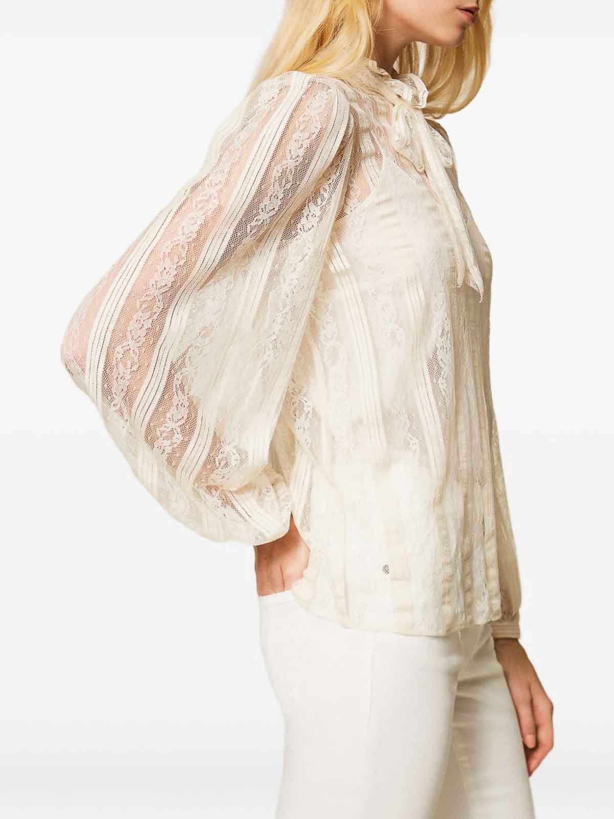 twinsetのアイボリーレースブラウス、ラバリエールカラー付き