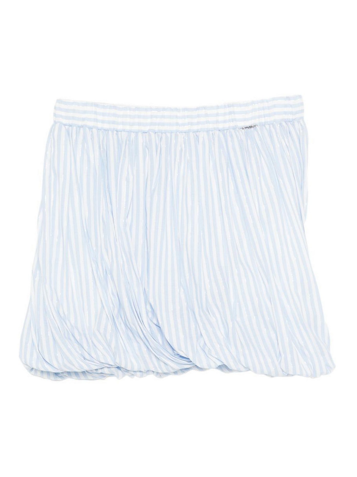 ツインセットのライトブルーとホワイトのストライプのミニスカート
