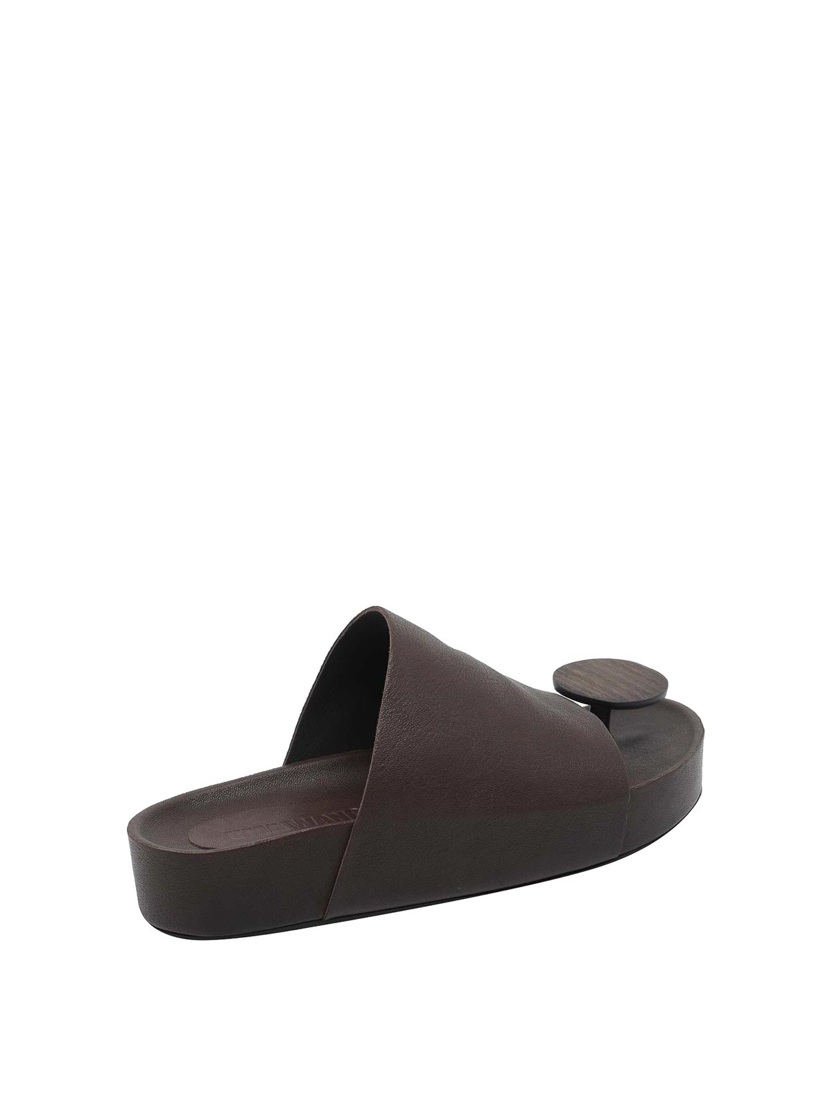 Uma wang ブラウンラウンドスライドサンダル、Tバックモデル、ラウンドトゥ、レザーアッパー、ラバーソール、プラットフォームソール