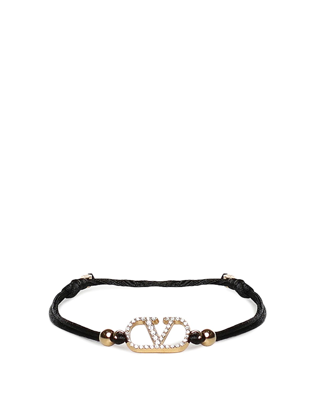 グレインカーフスキンとスワロフスキークリスタル製、調節可能なストラップ、スライド式ノットクロージャー、Vlogoシグネチャーの寸法:18 x 11 mm、イタリア製、色:黒