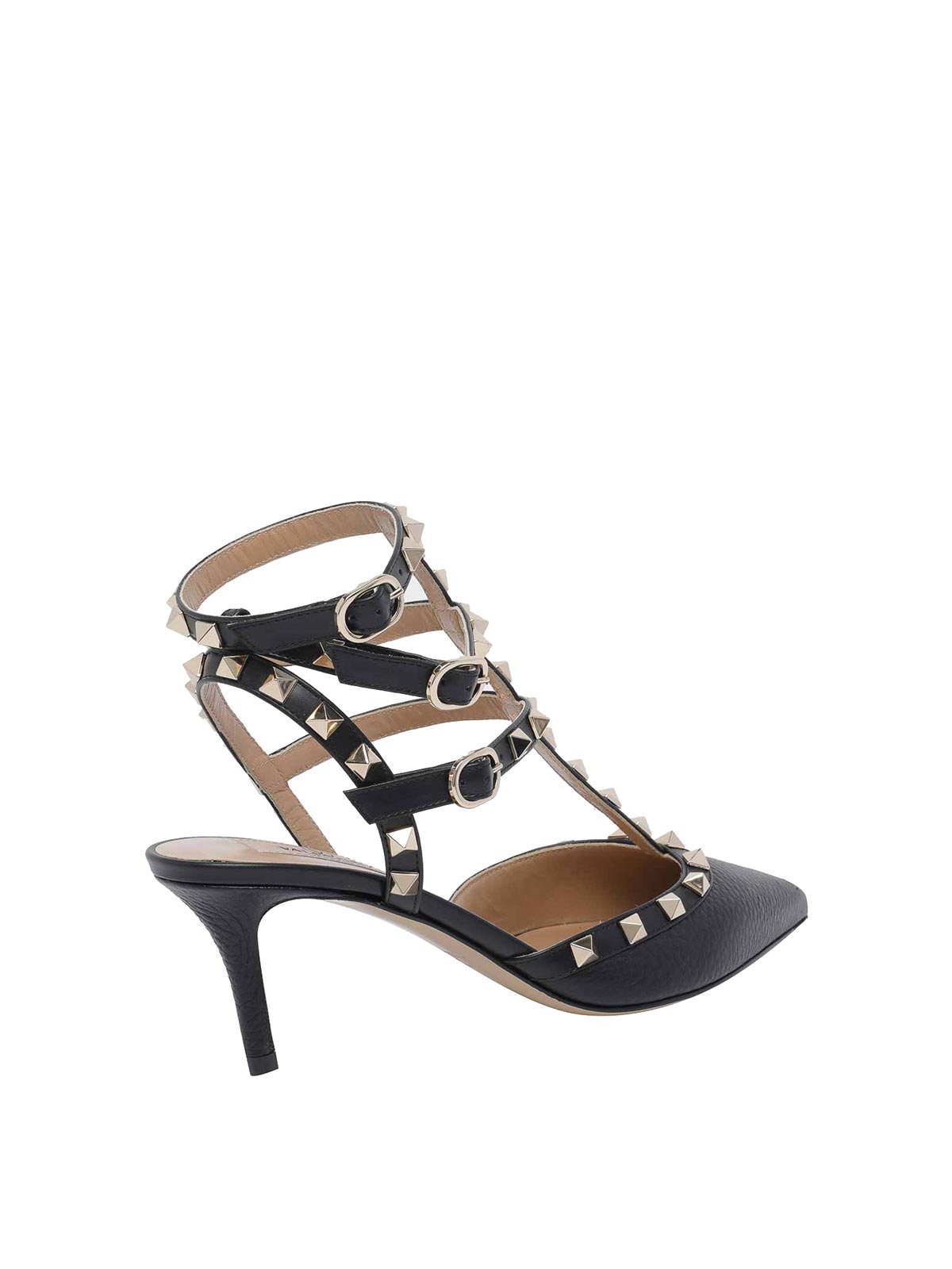 Valentino Garavani ブラックロックスタッズデコルテ、ポインテッドトゥ、レザーアッパー、全体にスタッズ、ラテラルバックル