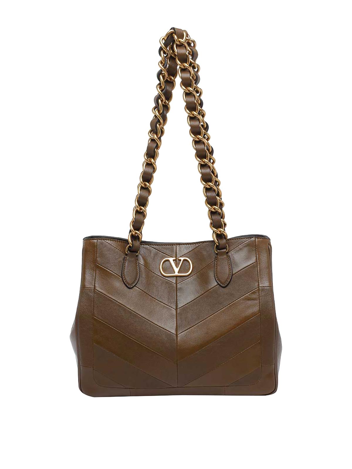 Valentino Garavani タンドララセインショッピングバッグ、マグネットクロージャー、1 スロット、2 ショルダーストラップ、正面ロゴ
