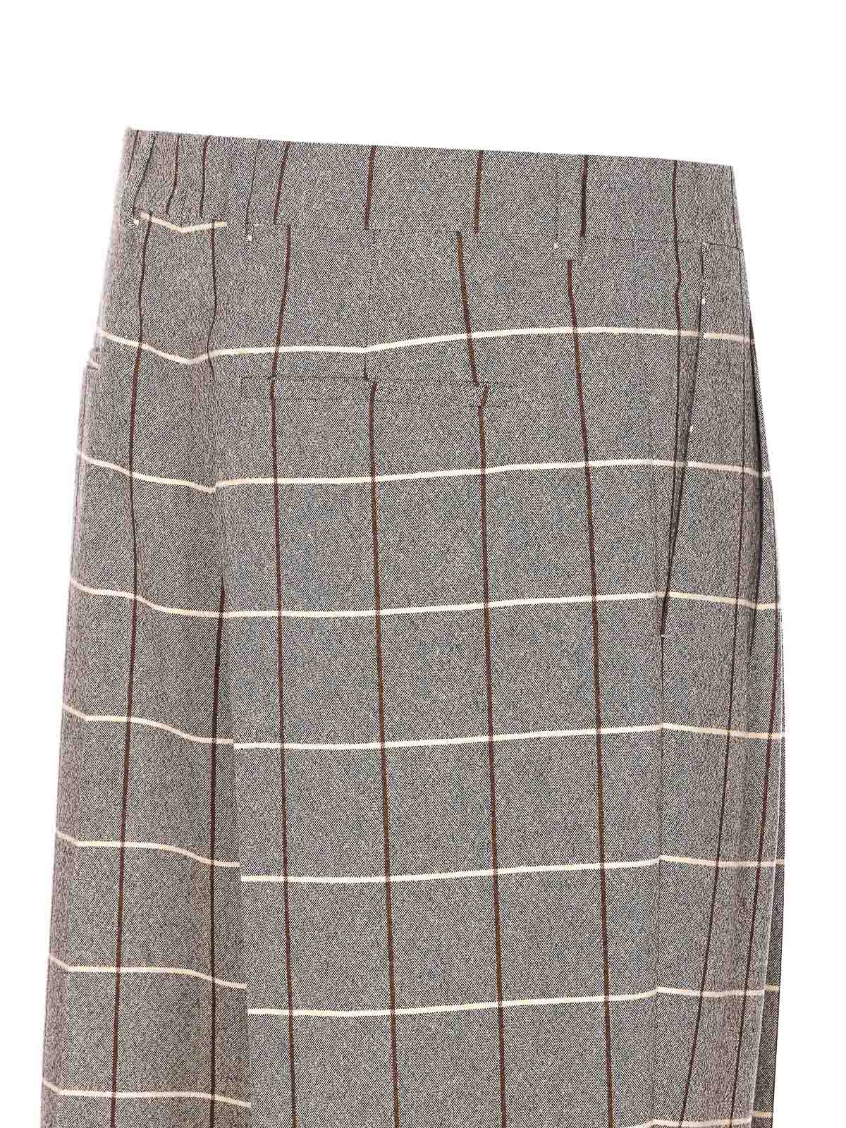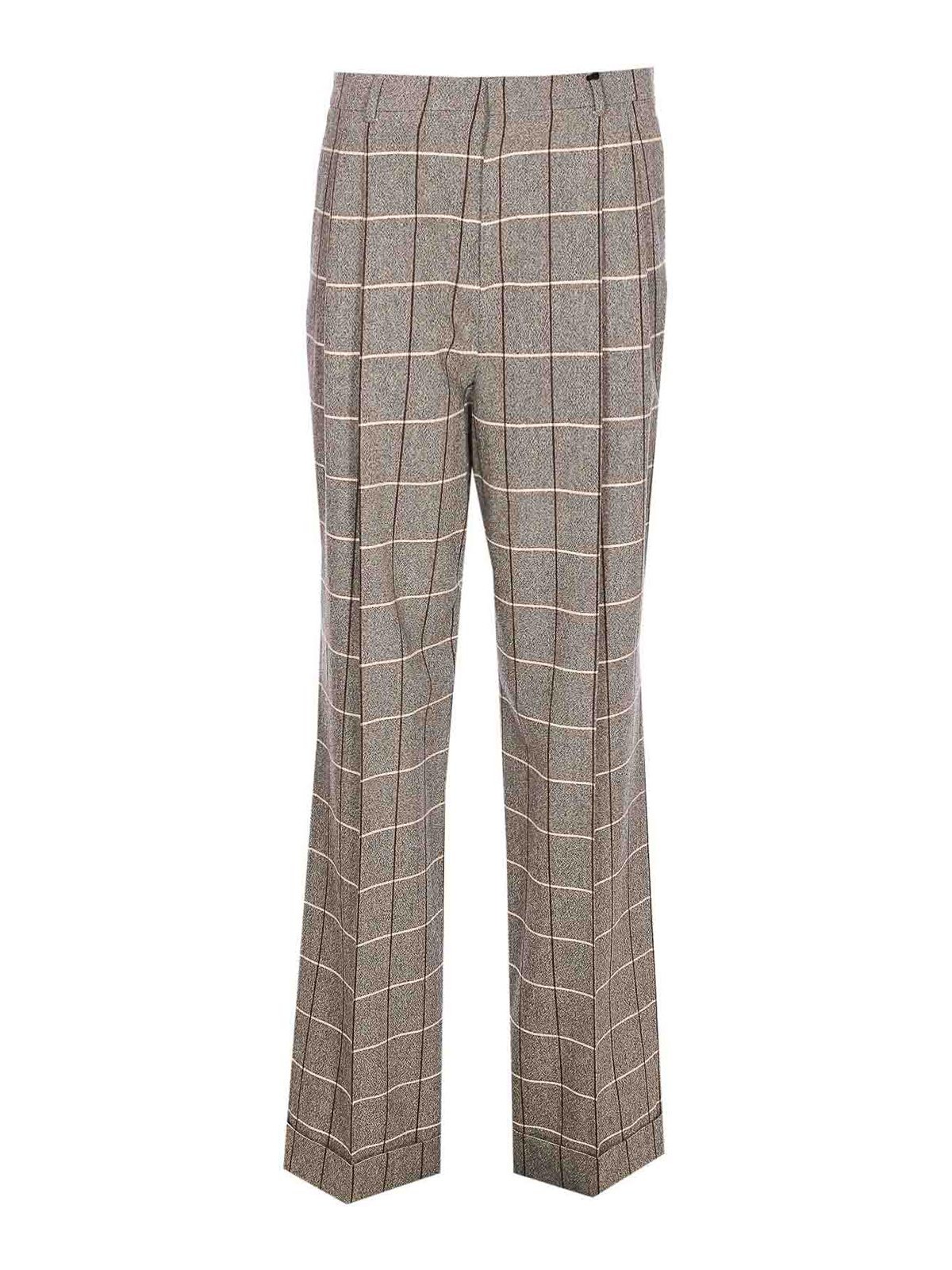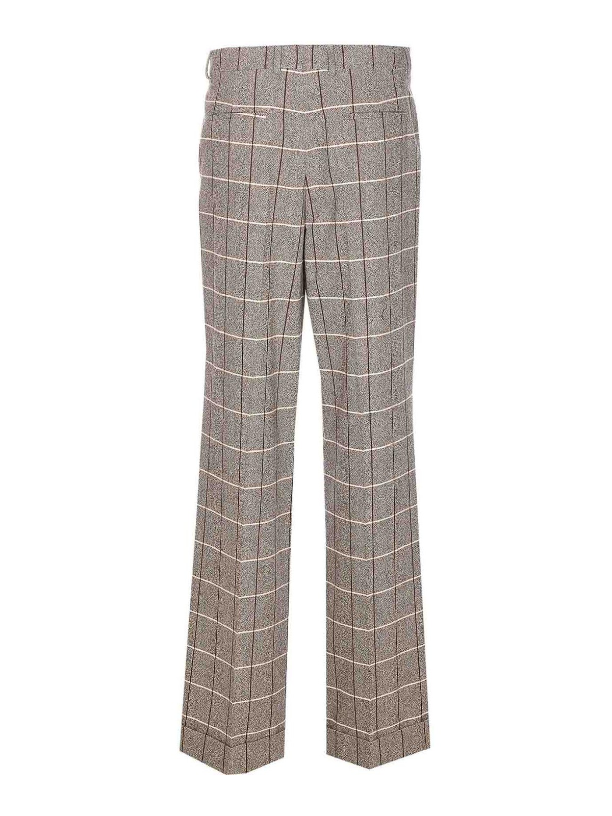 バレンチノグレーパンツ、ファスナー、フック&ボタン留め、サイドポケット、チェックモチーフ、ボトムにカフス