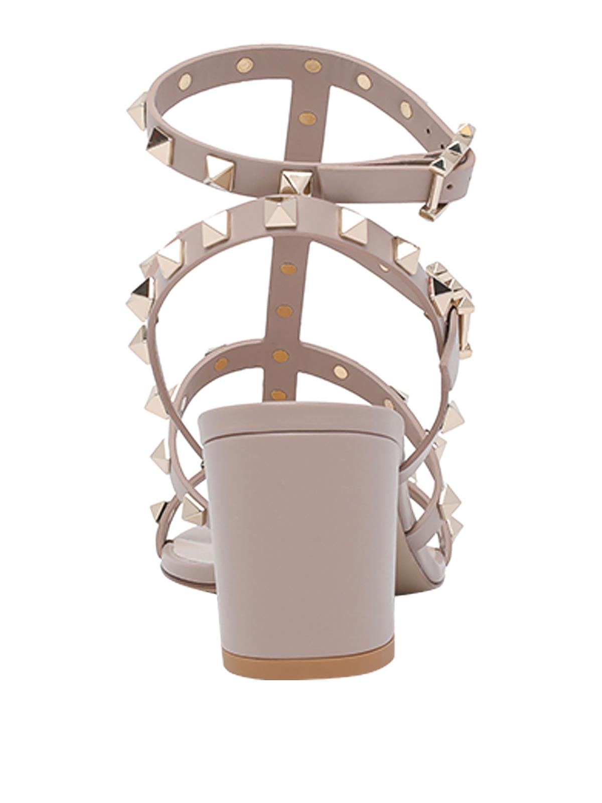 Valentino Garavani ベージュロックスタッズサンダル、レザーアッパー、スタッズディテール、バックルクロージャー、EUサイズ