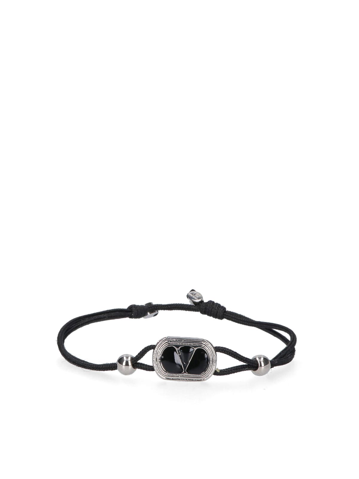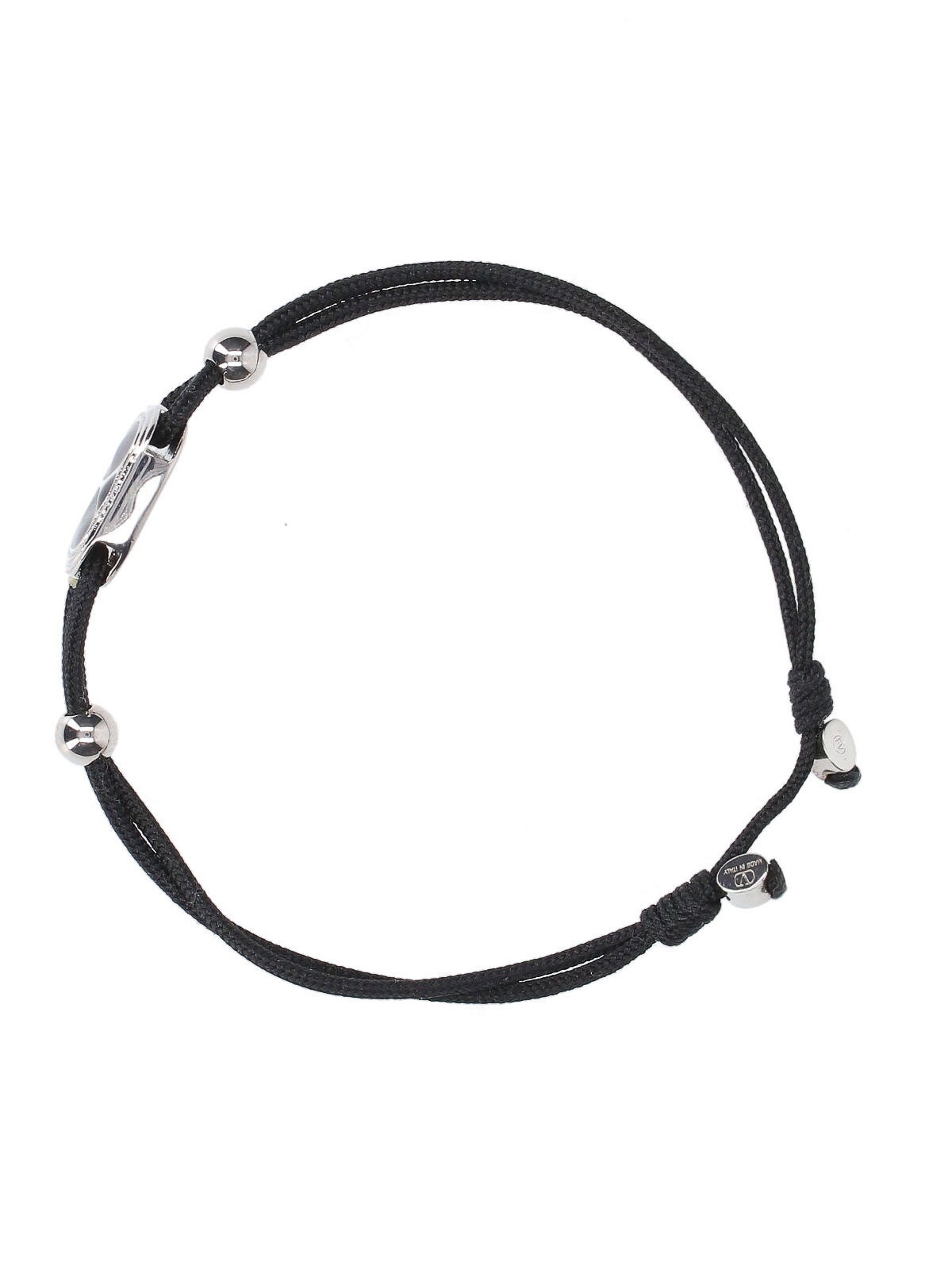 Valentino Garavani Vlogoシグネチャーブレスレット、ブラックファブリック製、シルバーメタルのロゴチャーム、調節可能。