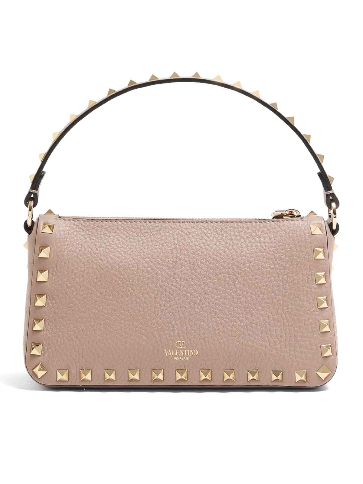 Valentino Garavani ロックスタッズ付きスモールショルダーバッグ。アイコニックなフックを再解釈してファスナー、プル、スタッズ、プラチナをしっかり留めています。仕上げの金具、ダブルジッパー、フック、調節可能で取り外し可能なショルダーストラップ、内側にはカードスロット1つ