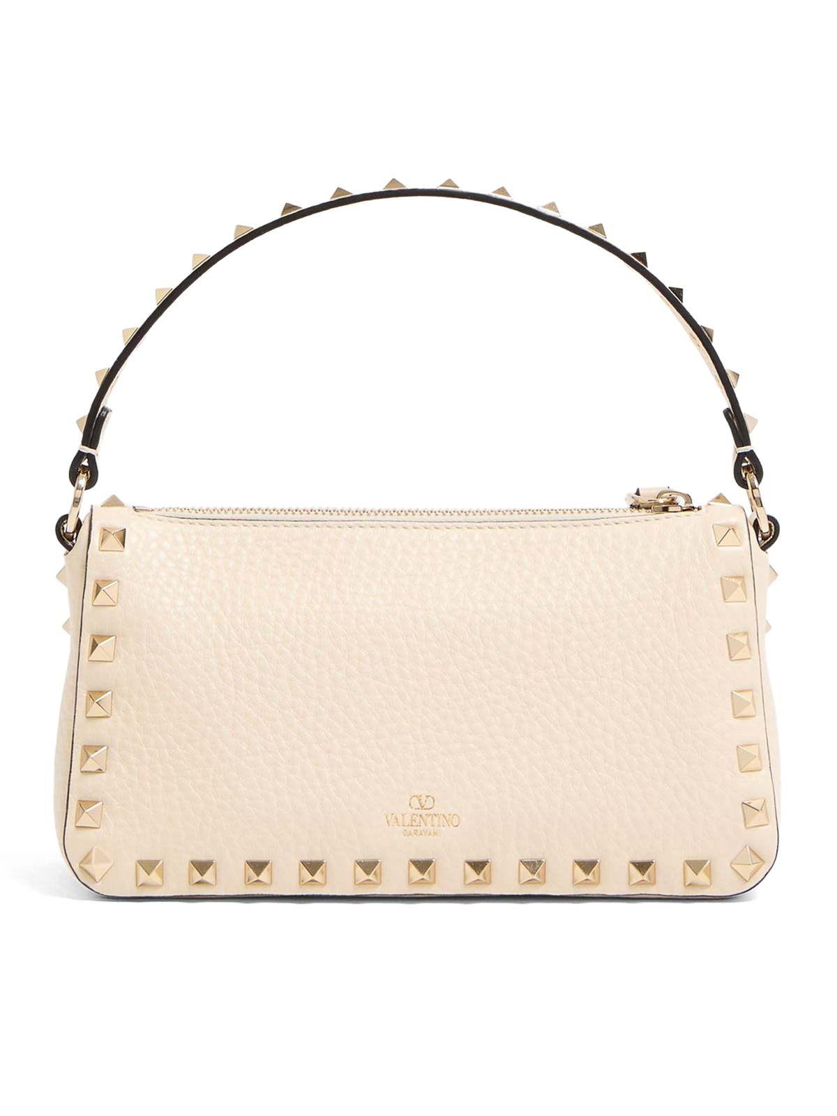 Valentino Garavani ロックスタッズ付きスモールショルダーバッグ。アイコニックなフックを再解釈してファスナー、プル、スタッズ、プラチナをしっかり留めています。仕上げの金具、ダブルジッパー、フック、調節可能で取り外し可能なショルダーストラップ、内側にはカードスロット1つ