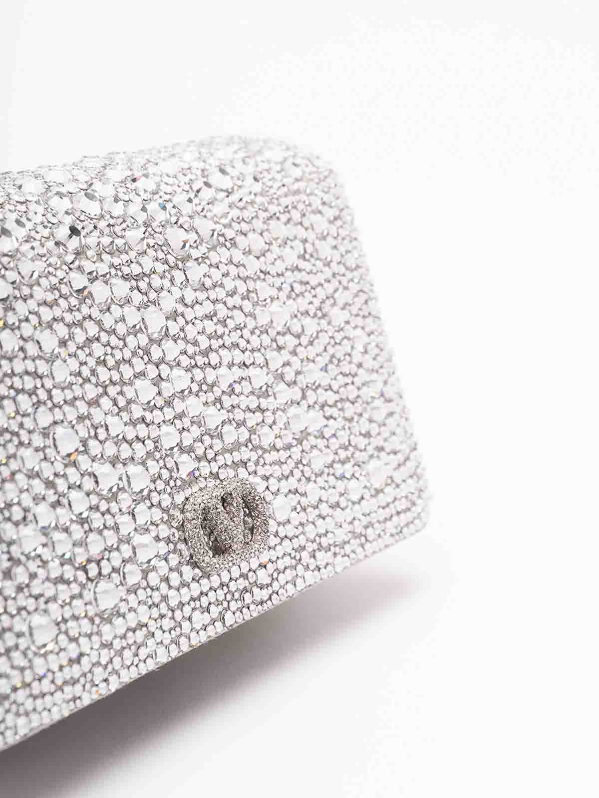 VLogo シグネチャーミニバッグは、デザインに明るさと個性を与える装飾的なクリスタルで装飾されています。特別な日のためにデザインされた貴重なアクセサリー。