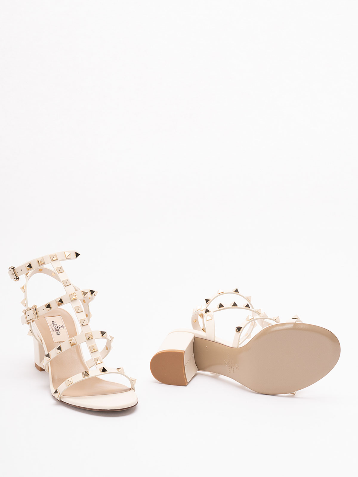 高品質のレザーを使用したロックスタッズサンダル。アイコニックなスタッズを輪郭に沿ってあしらったのが特徴です。ライトアイボリーカラーは明るく洗練されたエレガンスを醸し出し、洗練された夏の装いを完成させるのに理想的です。