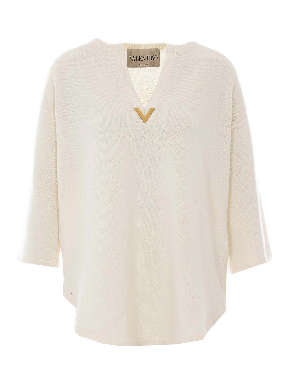Valentino Garavani アイボリーホワイトセーター、前面にVロゴディテール、Vネック