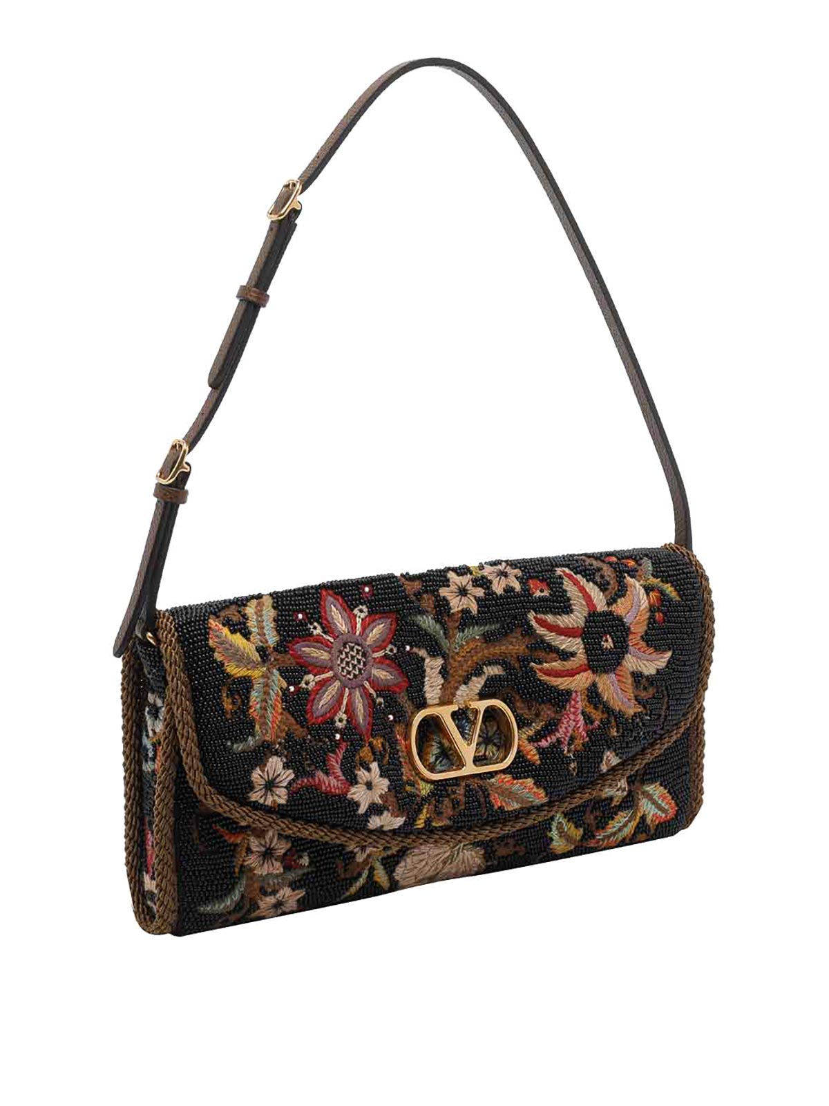 Valentino devain 刺繍入りスモールショルダーバッグ、マグネットクロージャー、インナースロット1つ、調節可能なハンドル