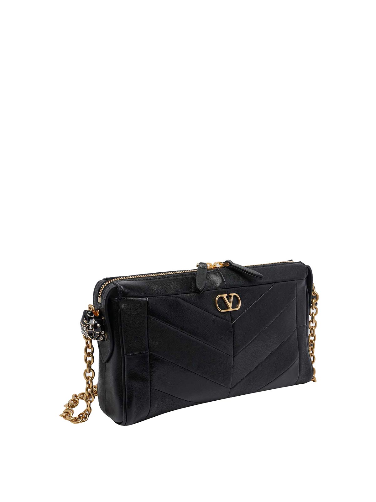 Valentiino Garavani ブラックパンテアクロスボディバッグ、ジップクロージャー、内側ファスナーポケット、1スロット、調節可能ストラップ、正面ロゴ