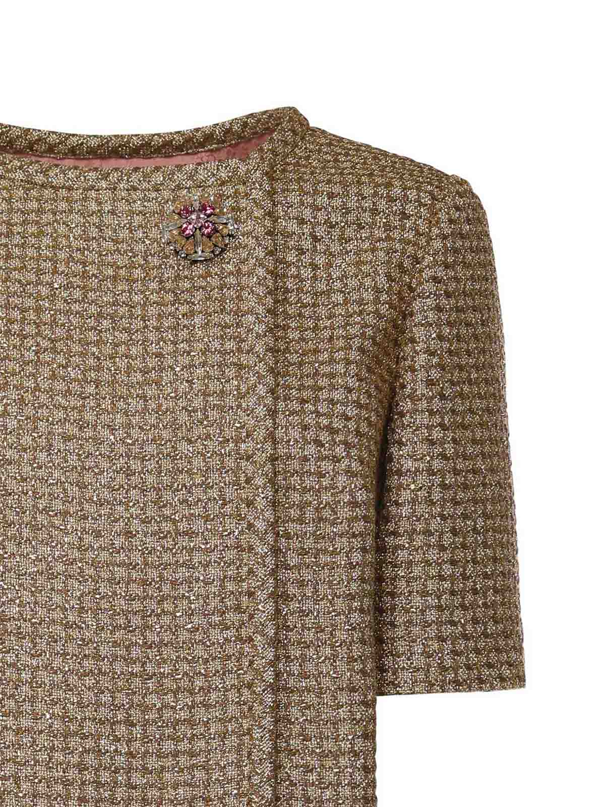 フロントファスナー&ボタン留め、半袖、ジュエルボタンのディテール刺繍、レギュラーフィット、イタリア製、表示サイズは42、色:ゴールド