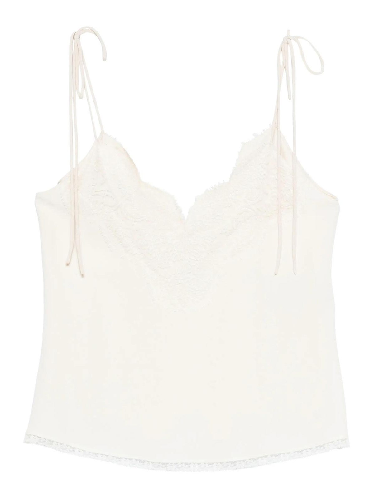 デザイナーカラー:バニリア、バレンチノトップ、オフホワイト、レーストリム、ショルダーストラップ、Vネック、フルルックにはバレンチノガラヴァーニのアクセサリーが含まれています。