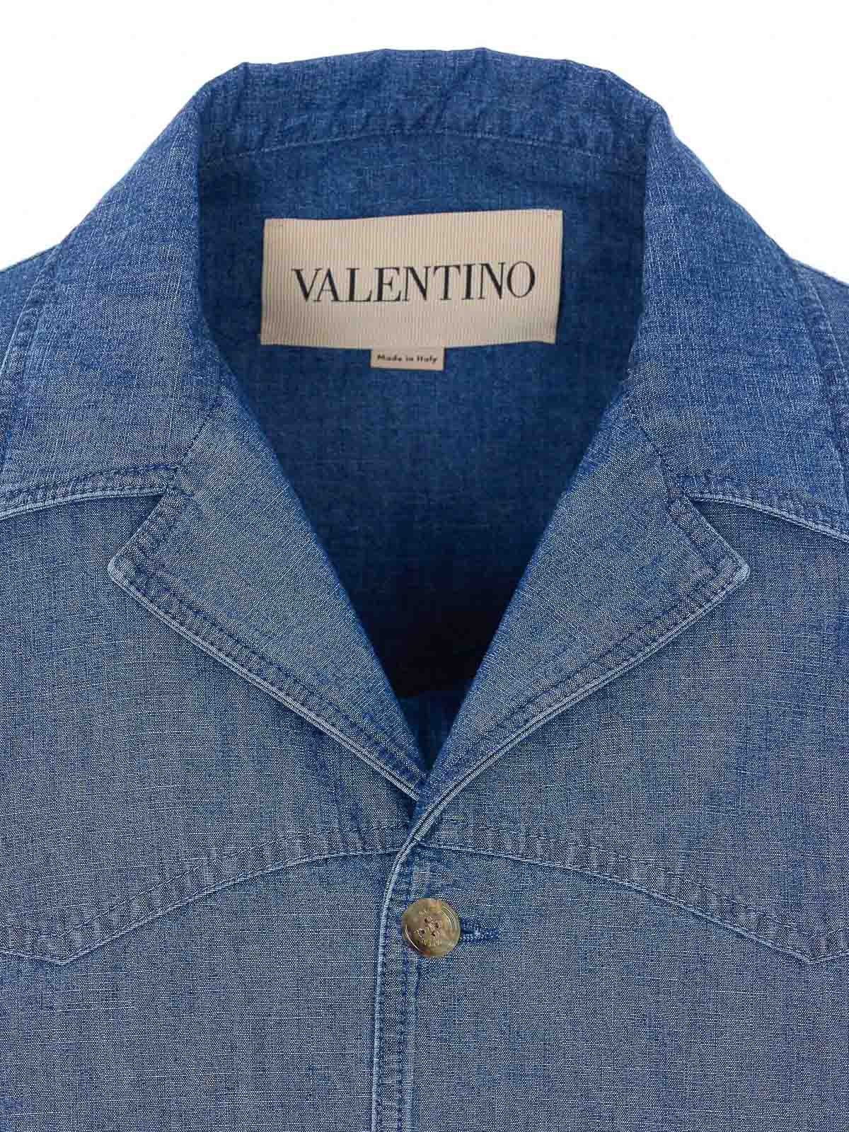 Valentino Garavani デニムシャツ、フロントボタン留め、ポケット、ショートスリーブ付き