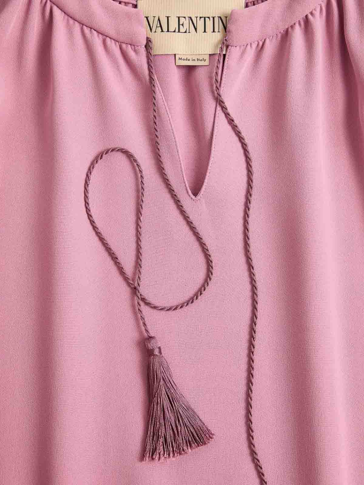 ヴァレンティノブラウスライトピンク Vネックドローストリングウエストタッセルディテールロングスリーブフェザーカフス。ヴァレンティノガラヴァーニのアクセサリーも揃っています。