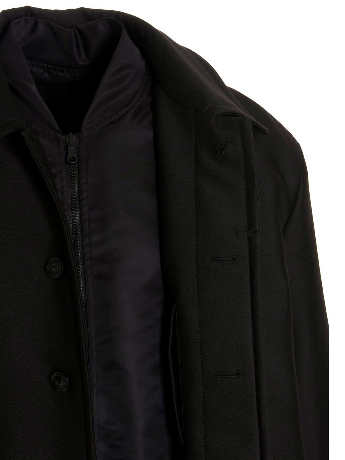 Valentinoピンクポップコレクションリバーシブルロングコットン、ウール、シルクのリバーシブルロングコート、取り外し不可のインナーボンバージャケット。隠しボタン留め、サイドポケット2つ、裏地付きでわずかにパッドが入ったスタイル、全体にジャカードVジャカード裏地付き。ジッパー付きボンバージャケット、サイドポケット2つ、裏地付きで少しパッドが入ったスタイル。