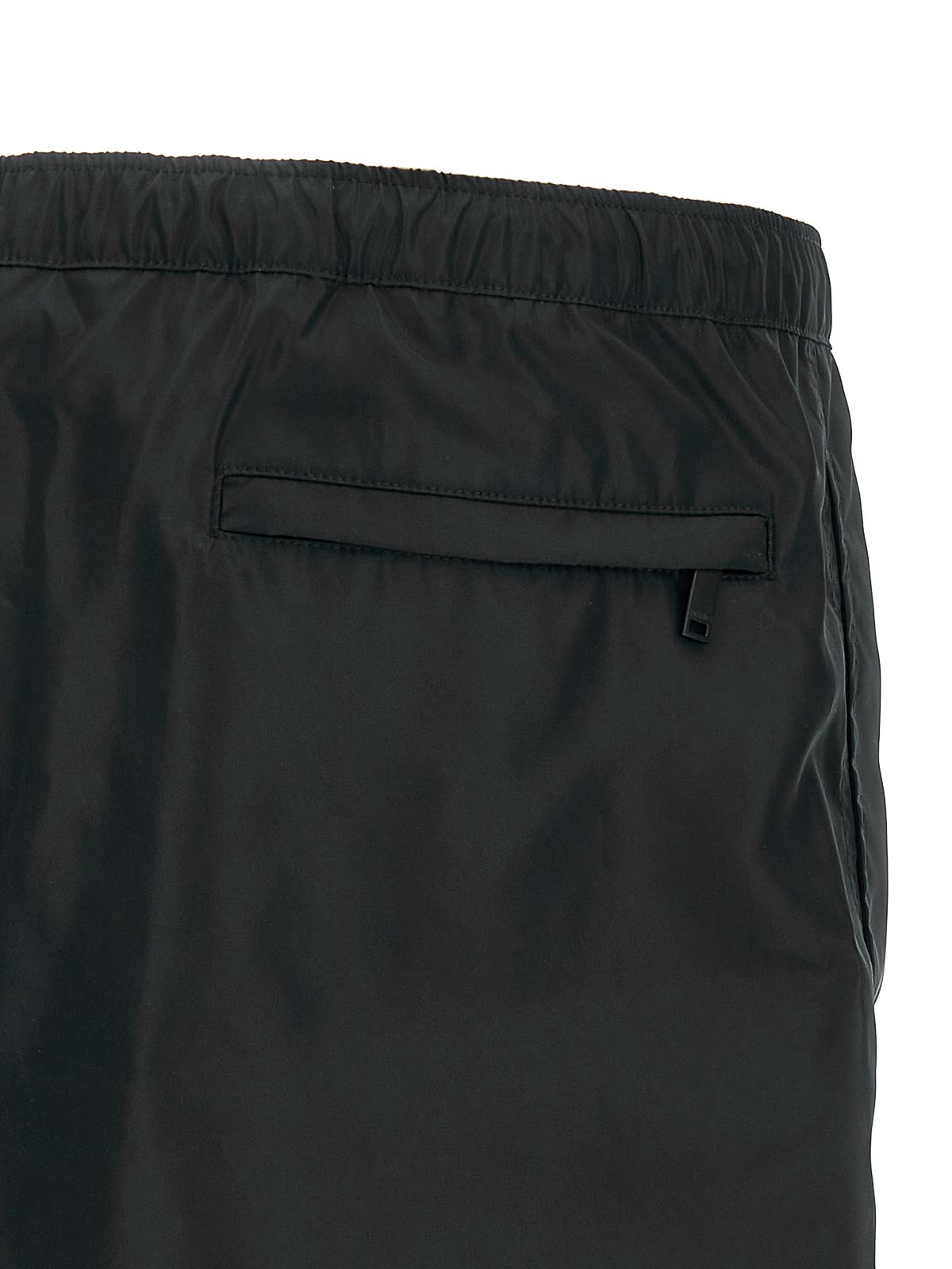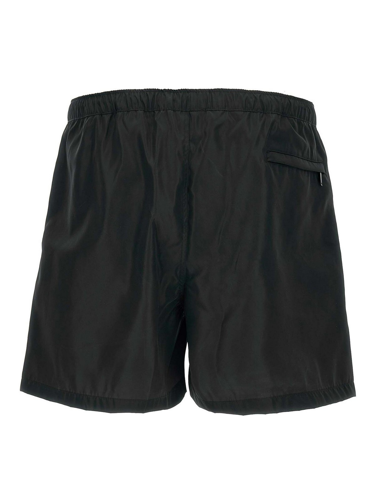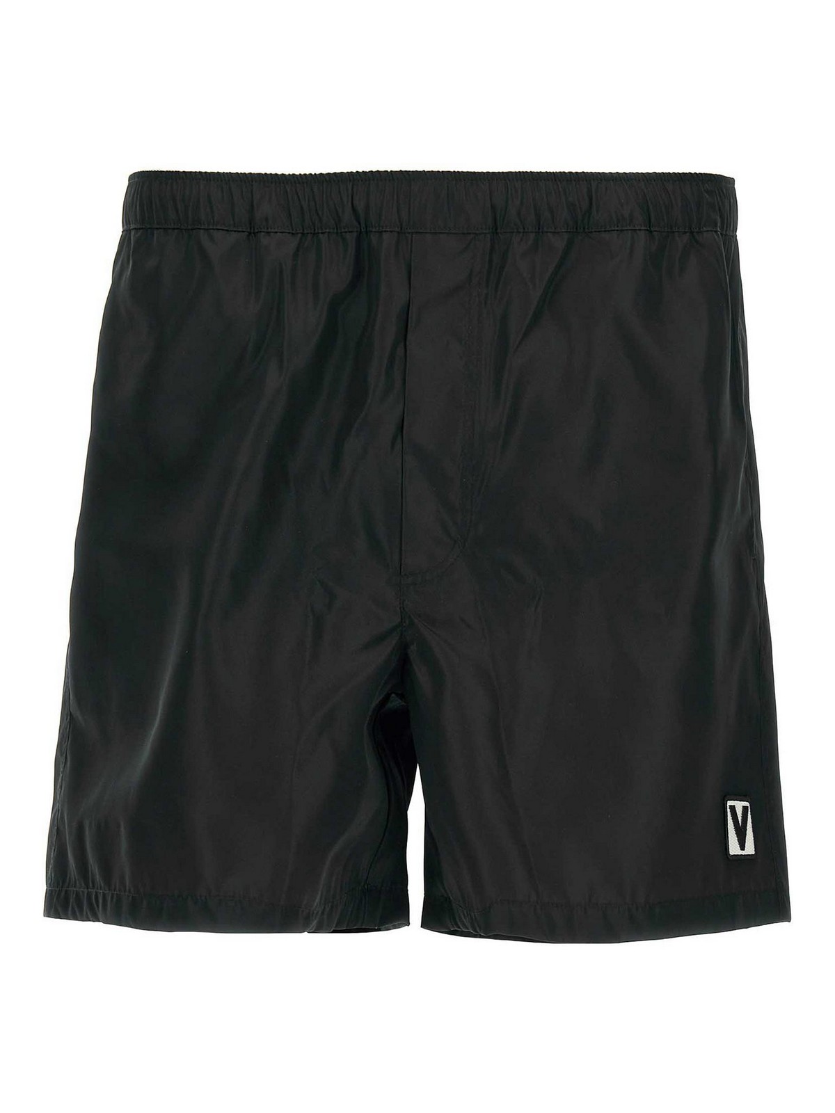 前面に「シェ・ヴァレンティノ」パッチをあしらったナイロン水着、ウエストに調節可能なドローストリング、ポケット、トロンプルイユフラップ、インナーメッシュブリーフ。