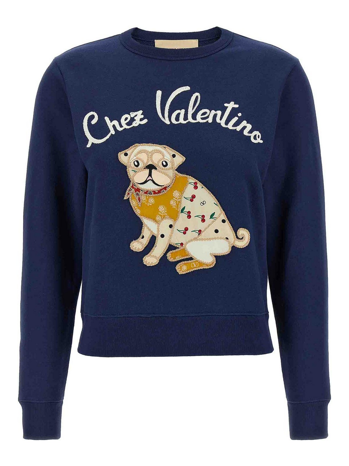 chez Valentino'のフロント刺繍入りコットン製スウェットシャツ、クルーネック、ロングカフスリーブ。