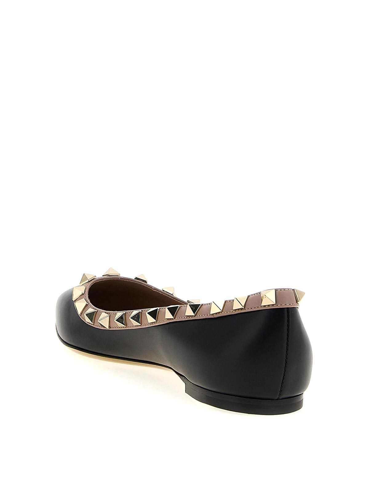 ロックスタッズのカーフレザー製バレエシューズ。コントラストの効いた輪郭とメタルスタッズ付き、ポインテッドトウ、レザーソール。