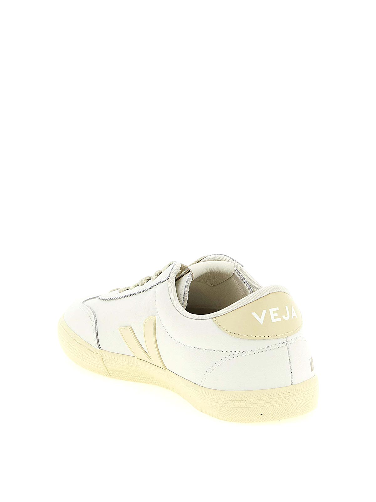 O.T. レザーの「ボレーシグネチャー」スニーカー、コントラストヒール、サイドにコントラストの効いたアマゾンゴムのロゴパッチ、ヒールにロゴプリント、レースアップクロージャー、ラバーソール。