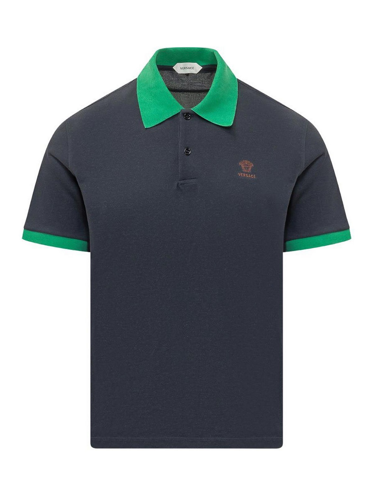 versace ロゴ入りブルー+グリーンコットンポロシャツ