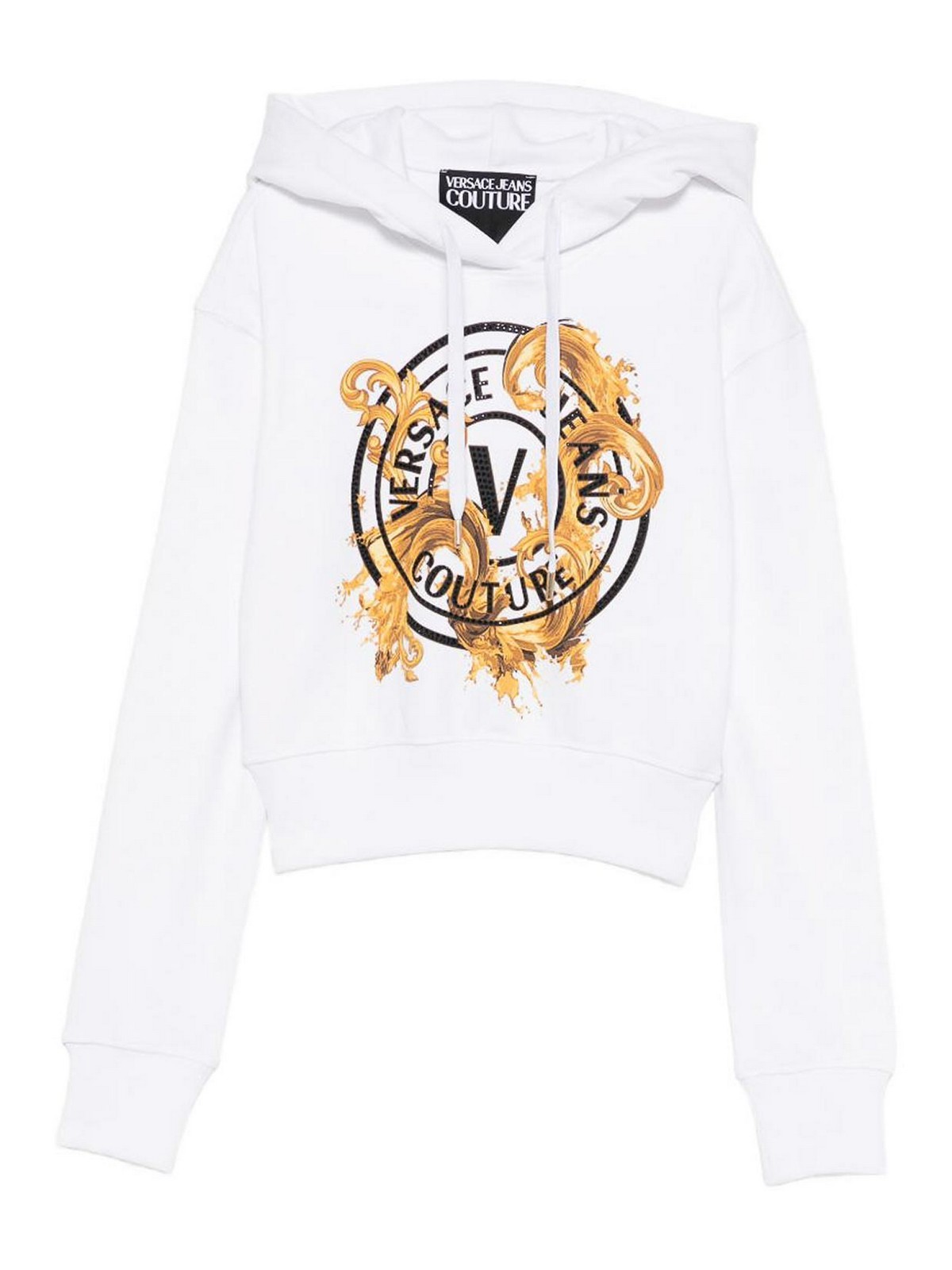 ヴェルサーチジーンズクチュールのプリントをあしらった白のパーカー