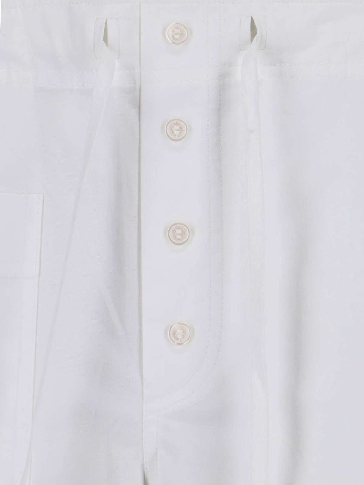 Victoria Beckham ポプリンパンツ、ホワイト、ミディアムウエスト、調節可能なドローストリングウエスト、フロントボタンクロージャー、サイドポケット2つ、バックポケット2つ、ストレートレッグ。