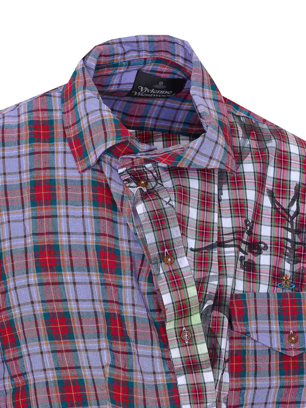 Vivienne westwood マルチカラーチェックモチーフカオスシャツ、フロントボタン留め、レギュラーカラー、長袖、ボタン留め付きポケット、袖口にボタン、オーブプリントロゴ