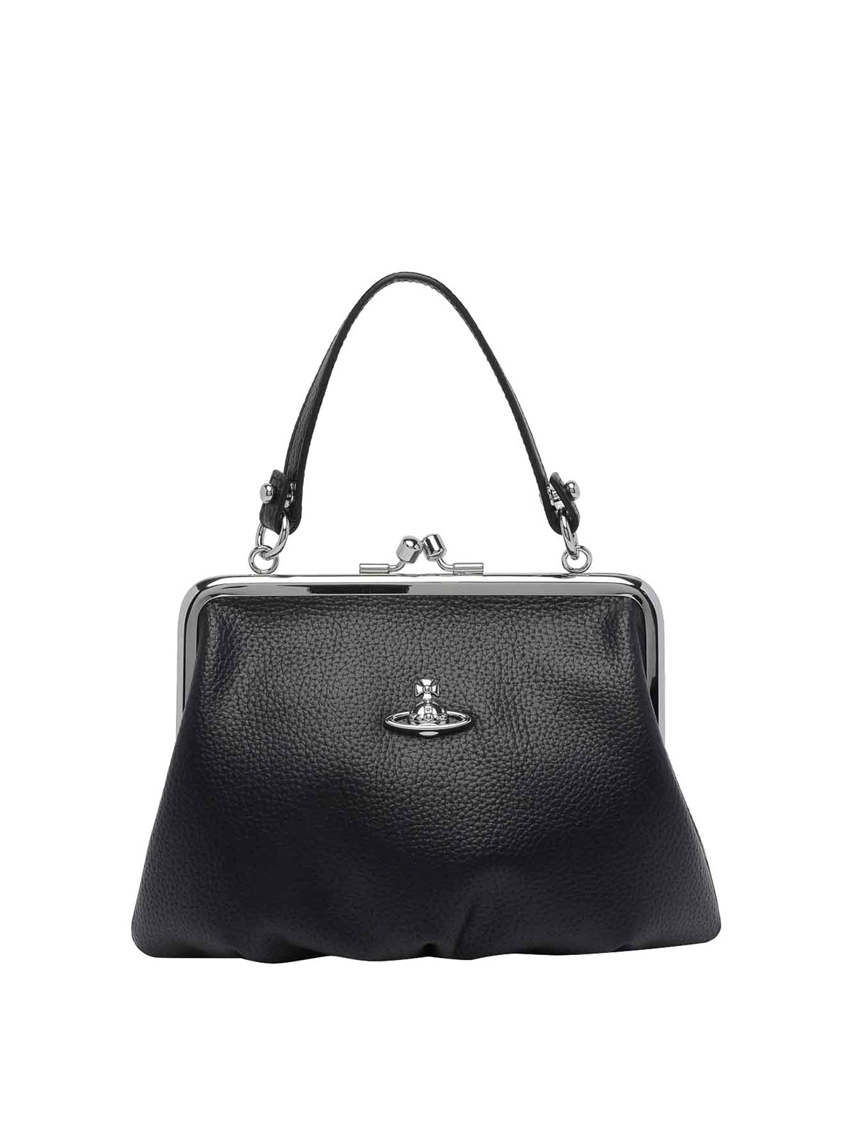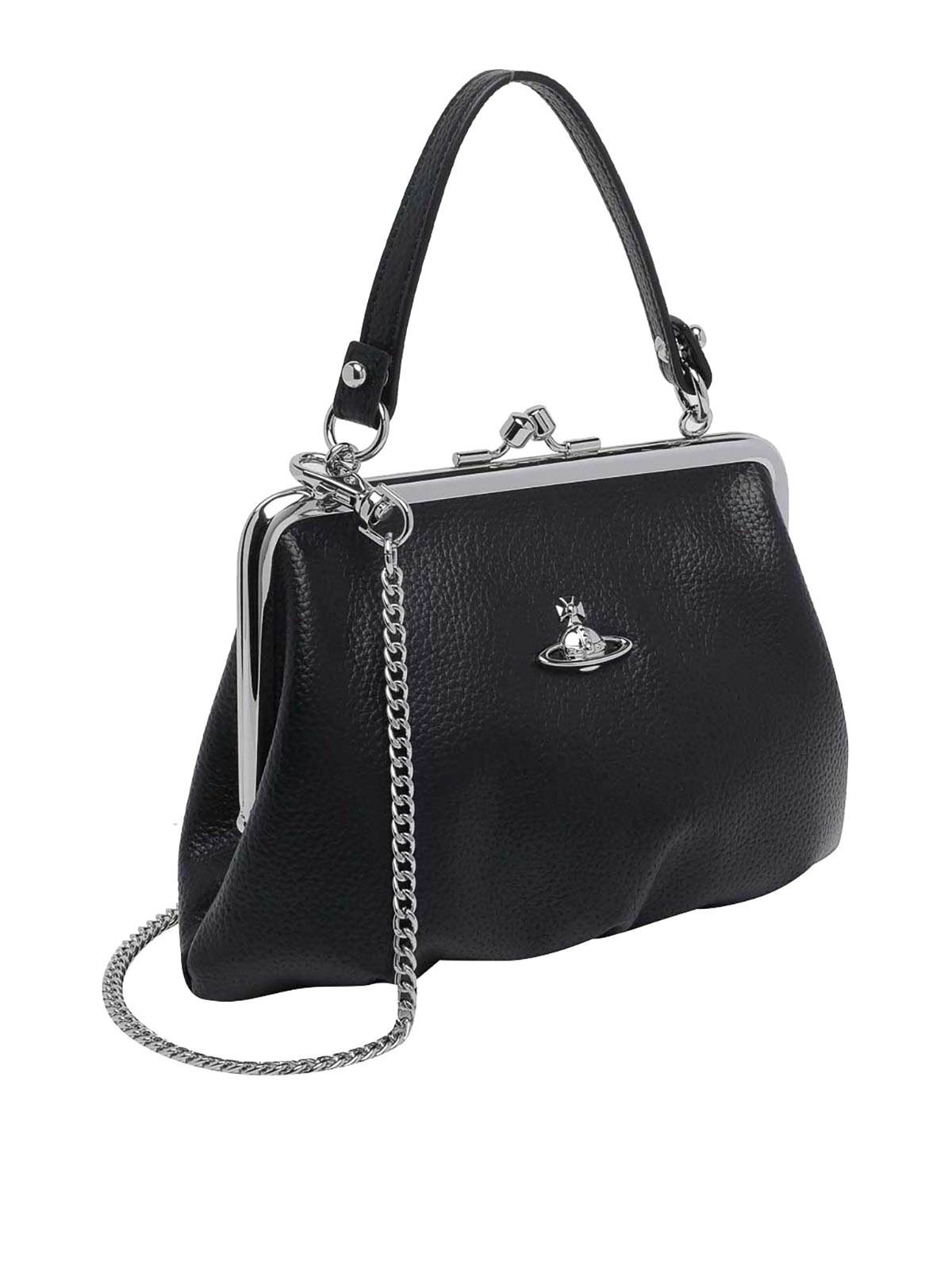 Vivienne westwood ブラックグラニーハンドバッグ、クリッククラッククロージャー、内側にファスナーポケット、取り外し可能なハンド1つ、取り外し可能なチェーンショルダーストラップ、フロントにプラークロゴ