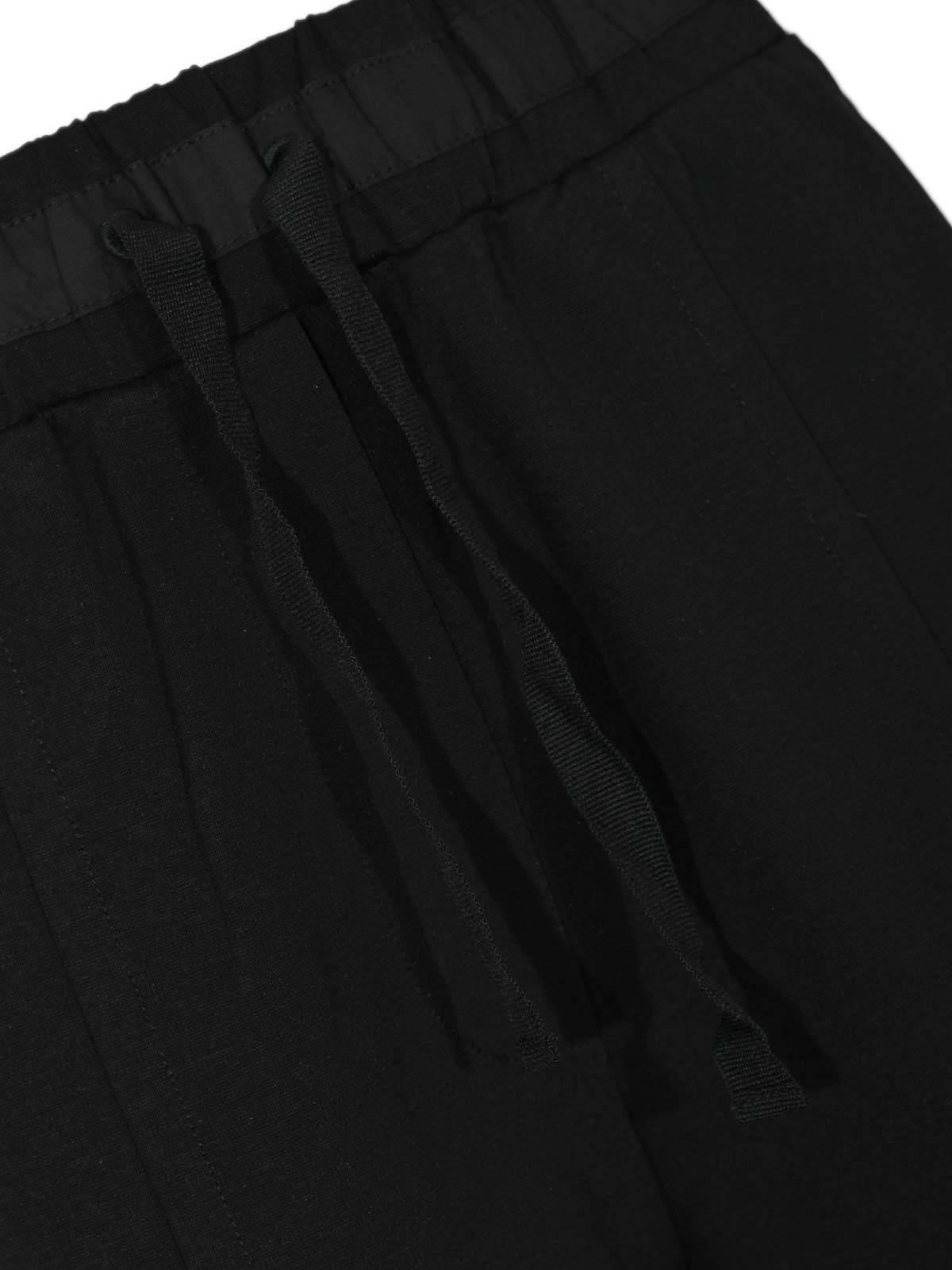 サイドにフラップ付きのカーゴポケットが付いたロングパンツ、ブラックのミラノステッチコットンとリヨセルジャージーのパンツはワイドフィットの伸縮性ポプリンウエストバンドで、前面にはプリーツステッチのドローストリング付きサイドスラッシュポケットが付いています