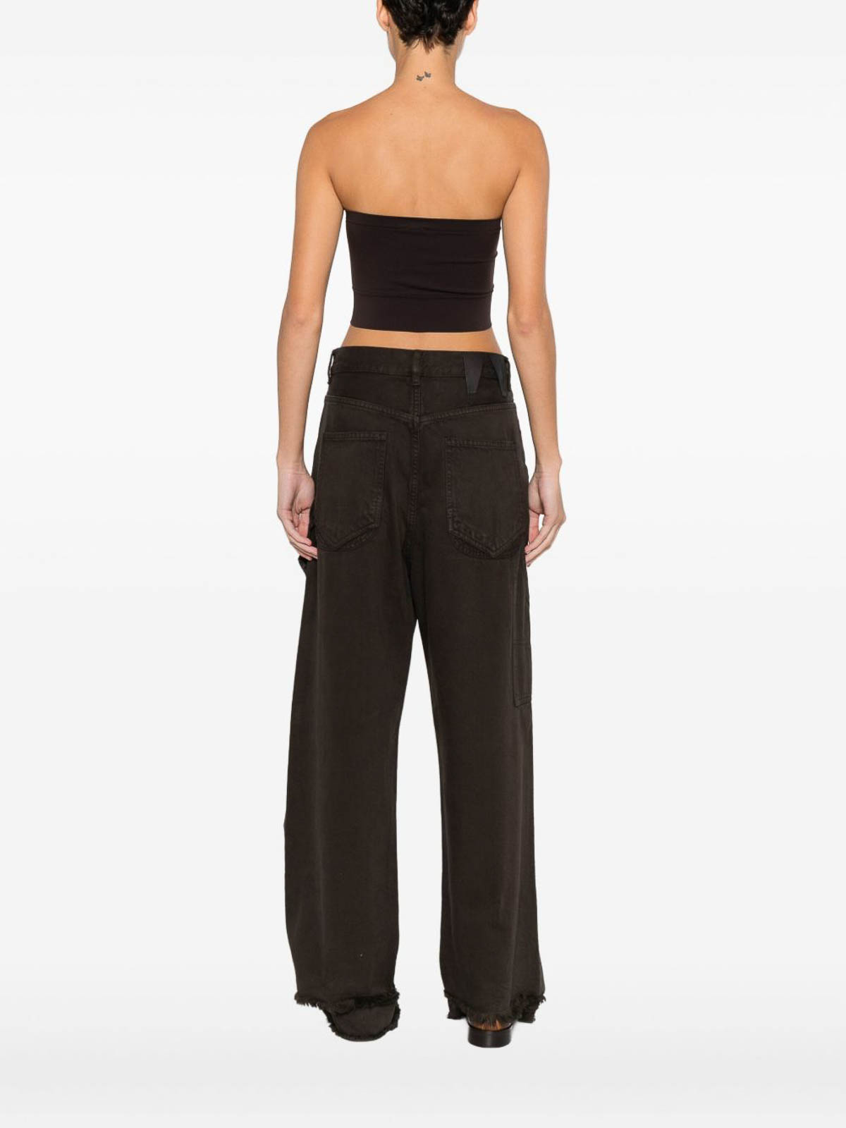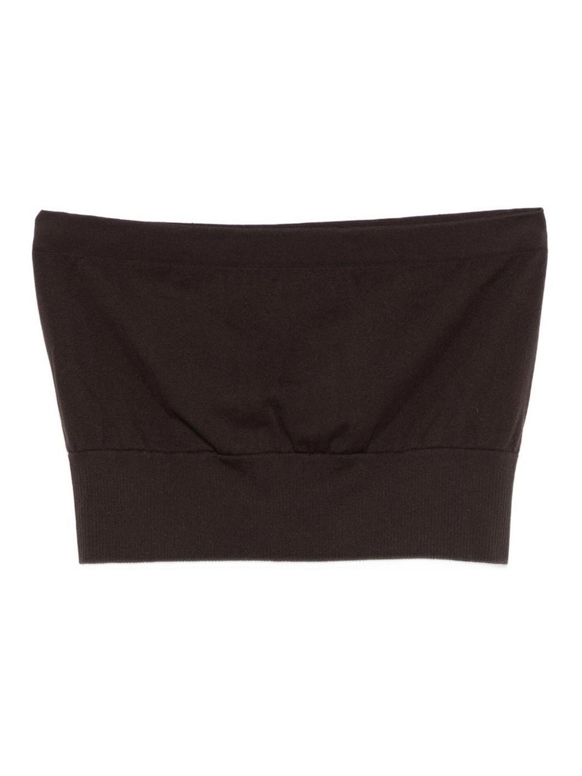 ダークブラウン、シームレス構造、ストラップレス、ストレートヘム、ストレッチデザイン、クロップド