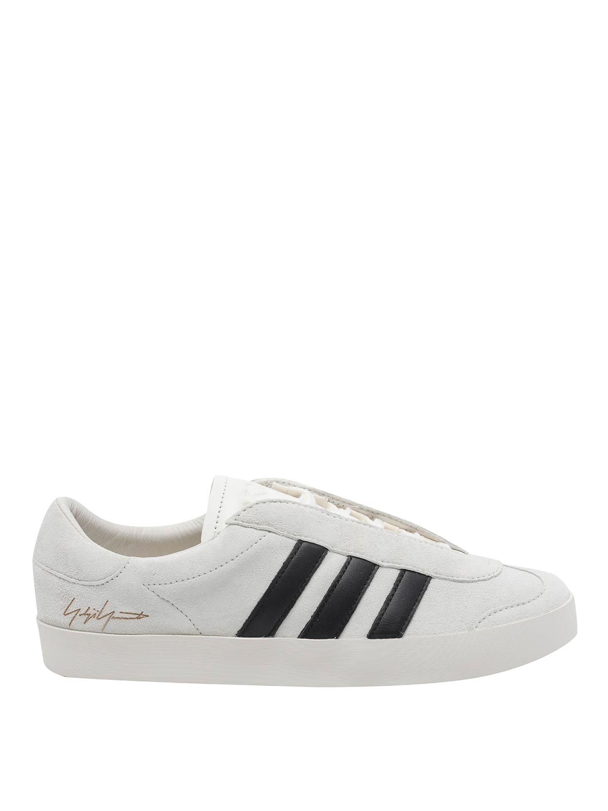 アディダス Y-3 ホワイト Y-3 ガゼルスニーカー、ラウンドトゥ、ラテラルロゴ、スエードモデル
