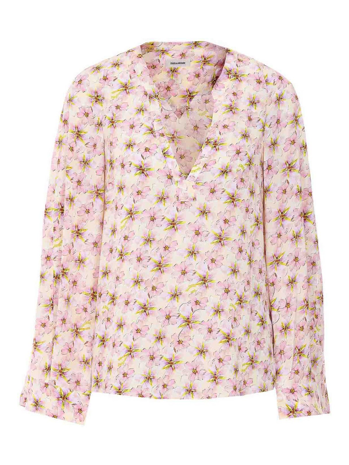 Zadig&Voltaire ペアトーニーシャツ、Vネック、ロングスリーブ、花柄