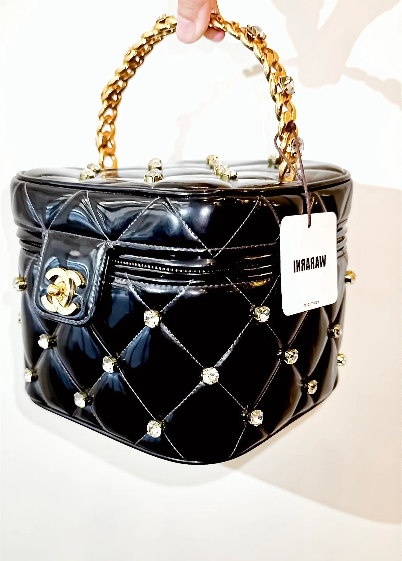 Chanel 1995 Black Patent Rhinestone Vanity Mirror Case — Ultra Rare Collector’s Piece
