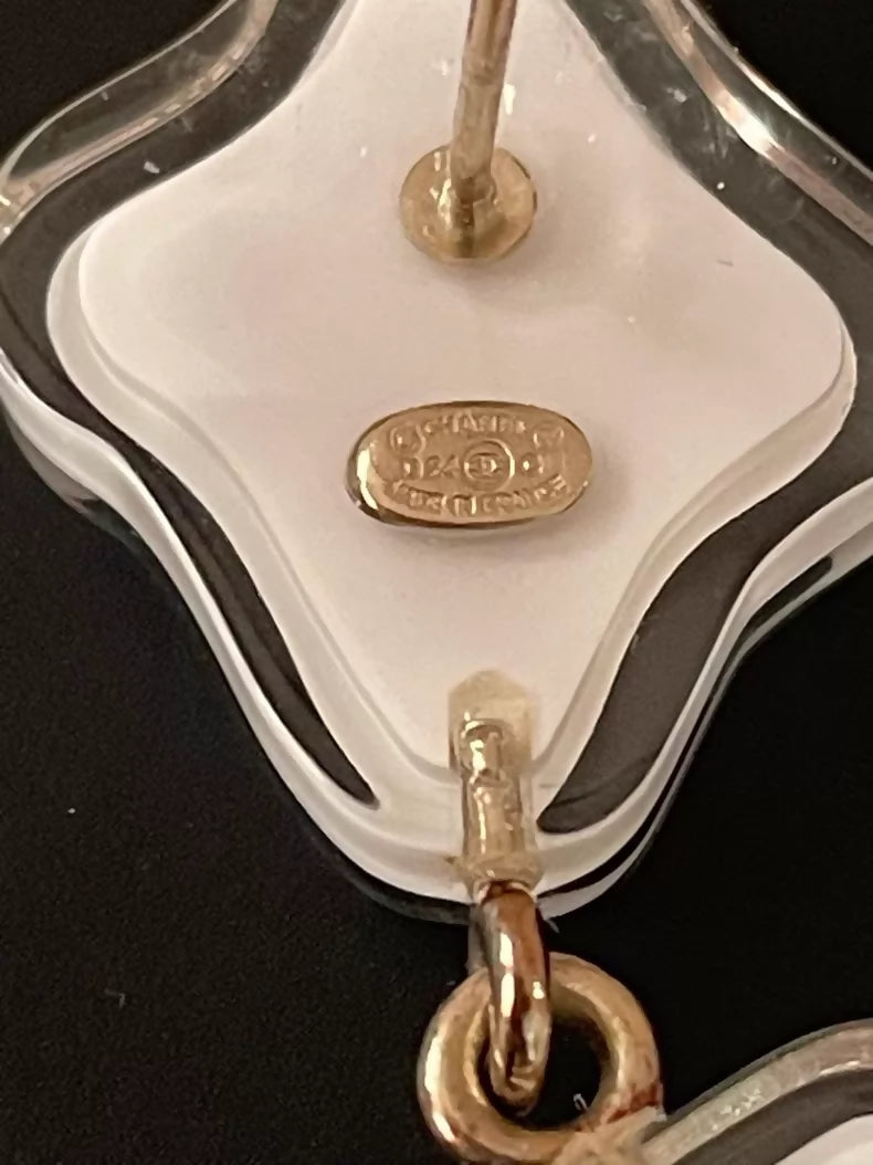 Playful charm meets luxury aesthetics with these whimsical acrylic earrings inspired by Chanel's iconic No. 5 perfume bottle. Rendered in soft pink tones with a cartoon sensibility, each pair captures the essence of the legendary fragrance in wearable form. Lightweight acrylic construction ensures comfortable all-day wear, while the distinctive design makes a bold statement for collectors and Chanel enthusiasts alike. A delightful fusion of high fashion and accessible artistry.