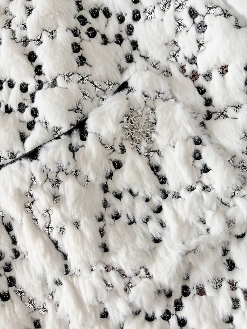 Chanel 25N White Sequined Fur Coat