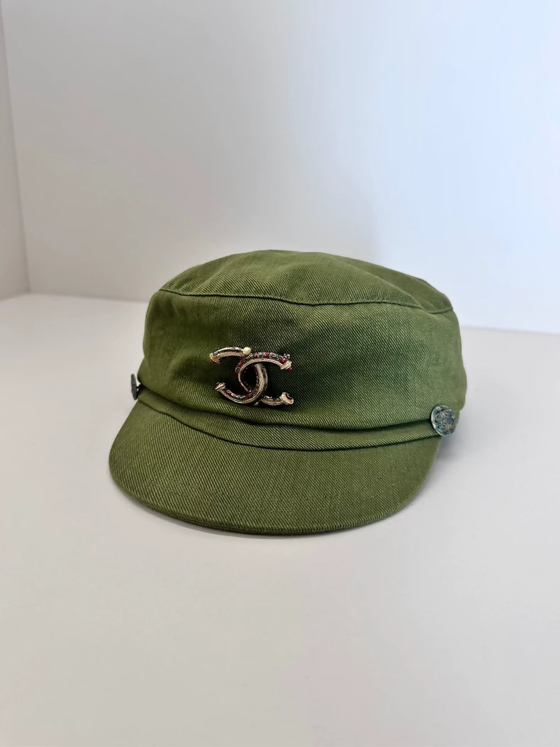 Chanel Shanghai Collection Double C Cap in size 58, presented in excellent condition. This iconic piece features the signature interlocking C logo, crafted with meticulous attention to detail. Perfect for the discerning collector seeking a timeless accessory from Chanel's coveted Shanghai line. Minimal wear consistent with careful ownership.