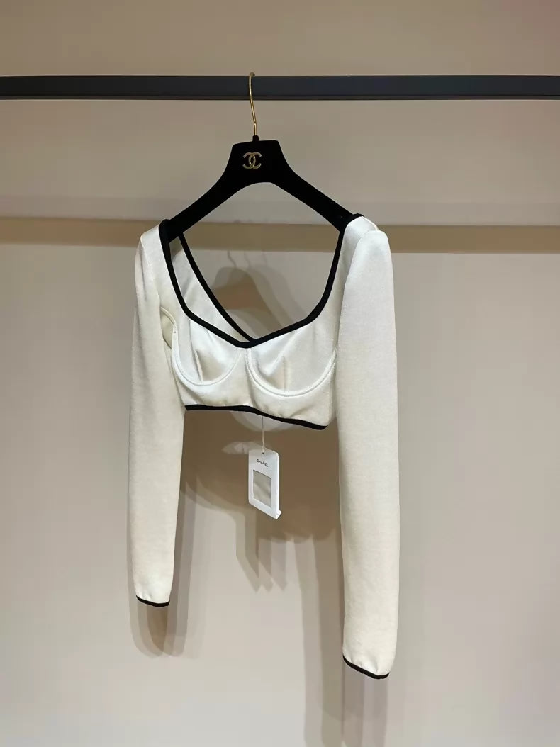 Chanel long-sleeved black and white top
